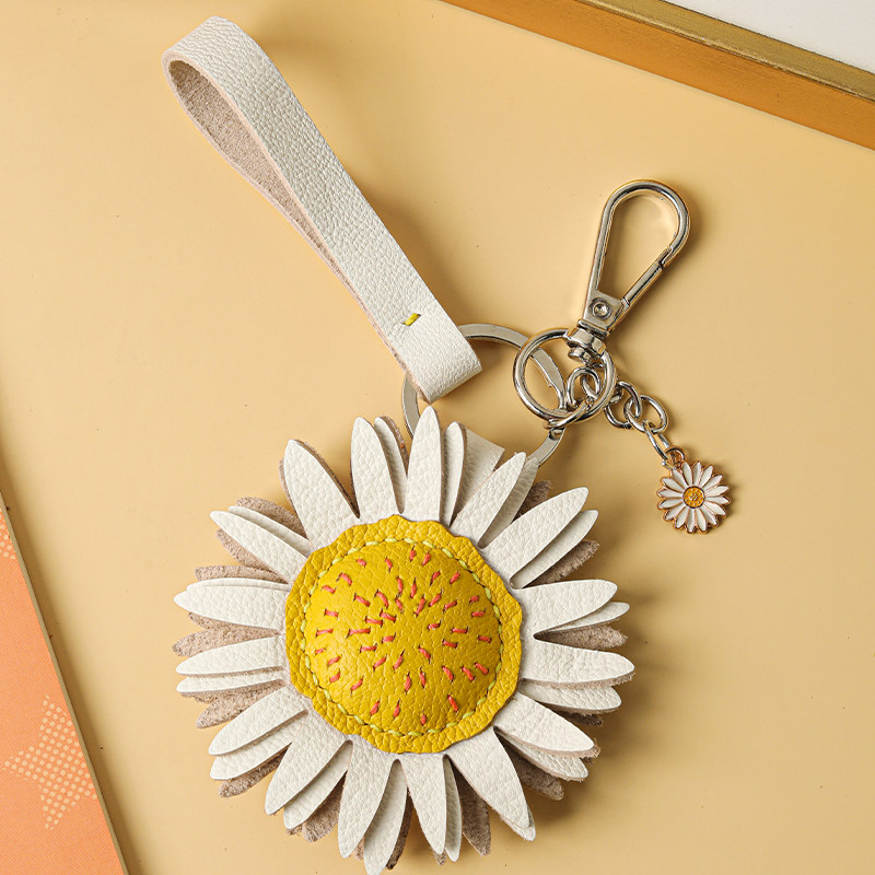 裁鱼手工diy材料包真皮小雏菊汽车钥匙扣挂件包包挂饰自制送礼物