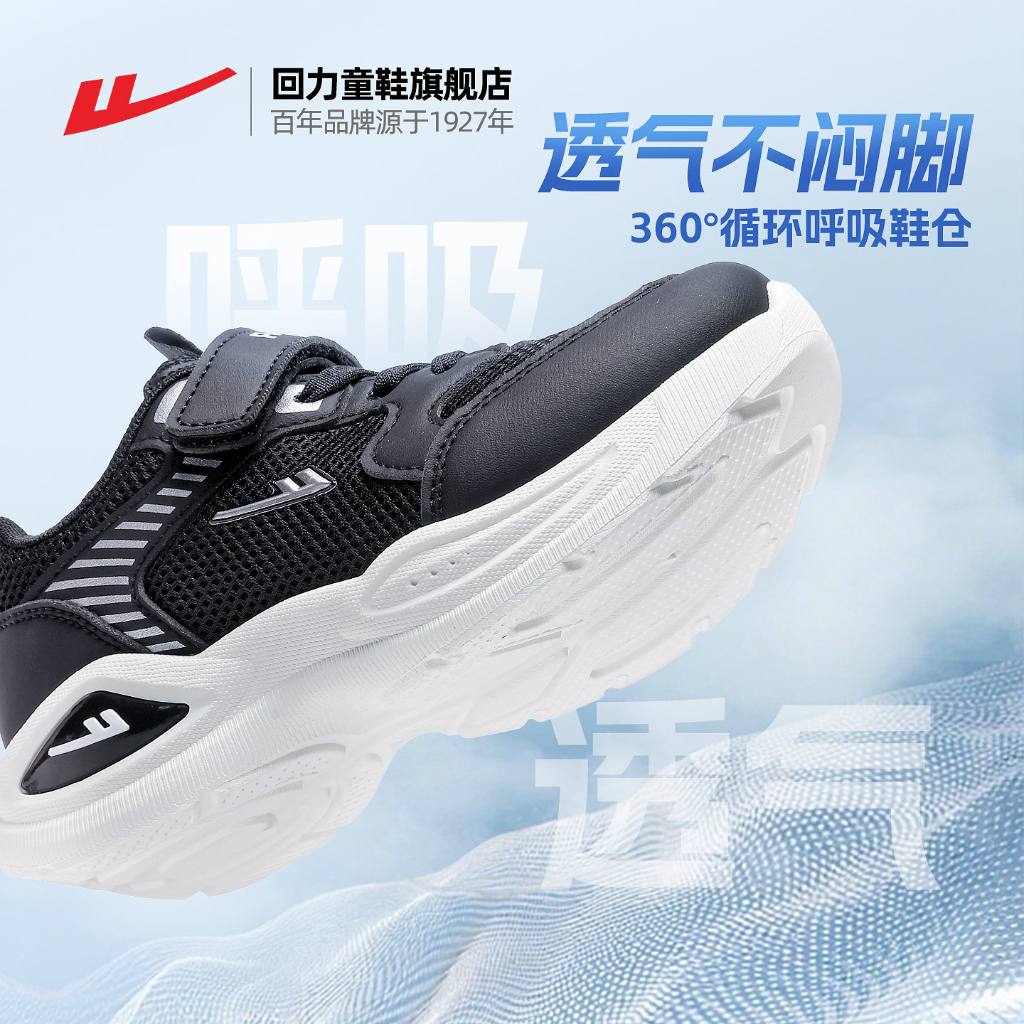 回力儿童跑步鞋2026春季新款透气中大童网面鞋子魔术贴男童运动鞋