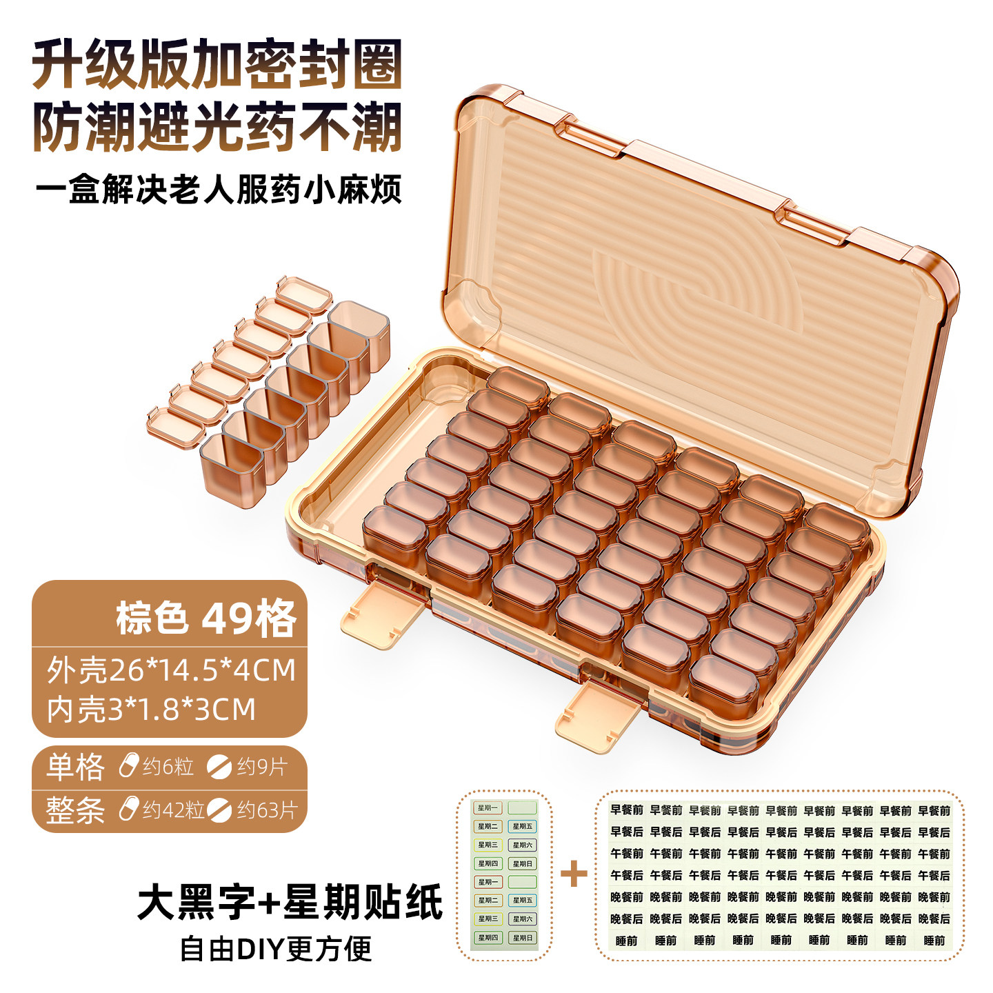 药盒便携式一周七天随身药品分装盒密封遮光一日三餐大容量收纳盒