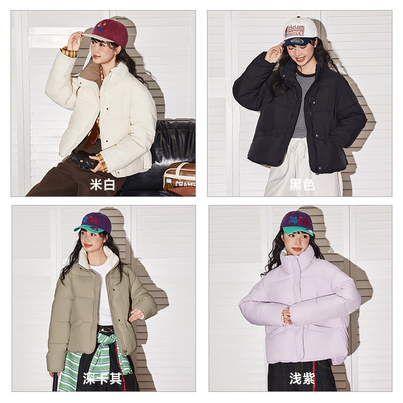 唐狮短款立领棉服女款2026新款冬季女款加绒加厚保暖夹棉外套VB