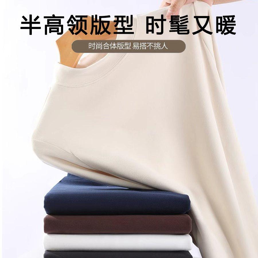 白色德绒打底衫男款秋冬季半高领正肩卫衣简约高级感内搭长袖T恤