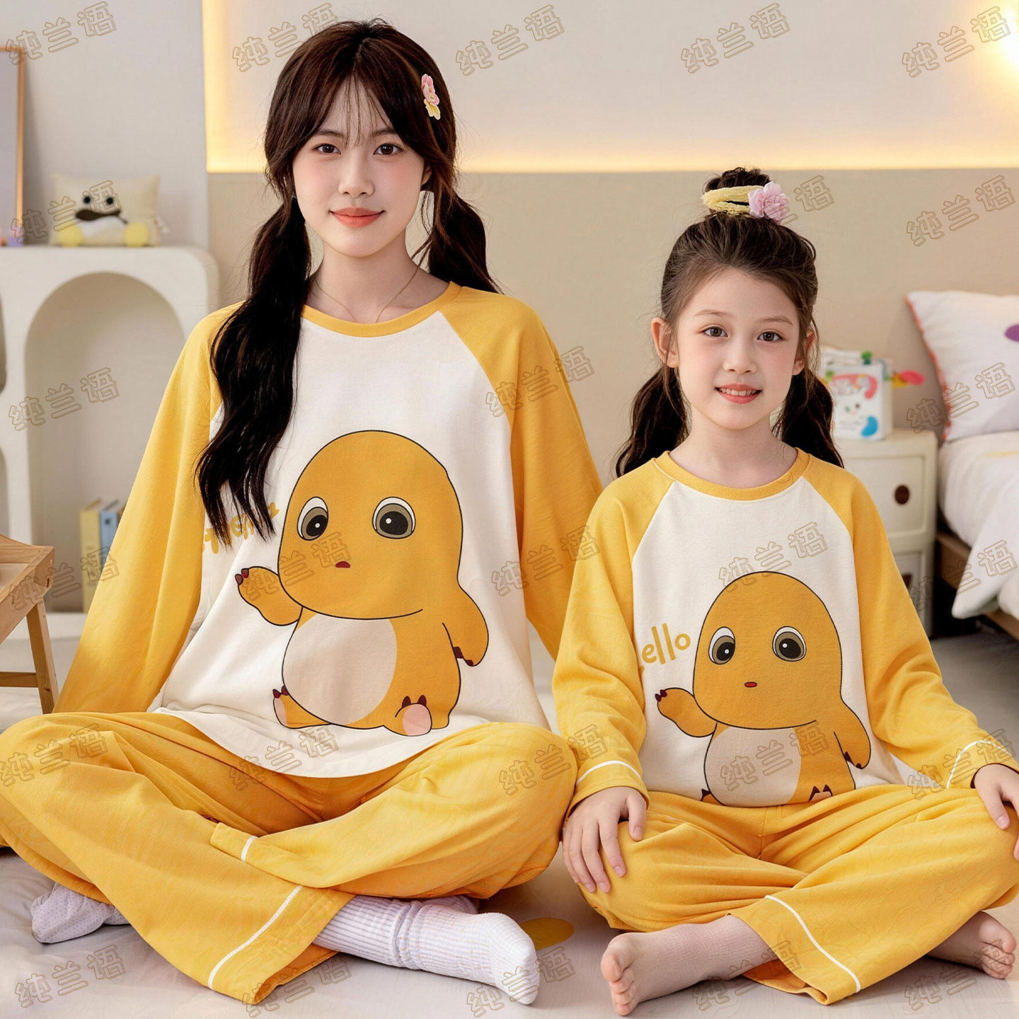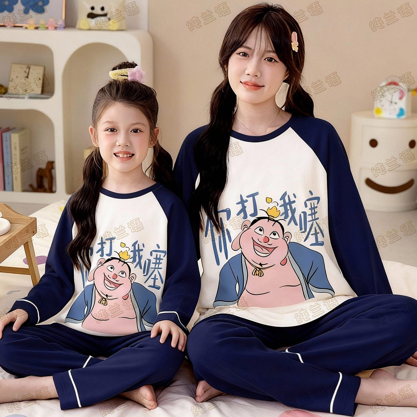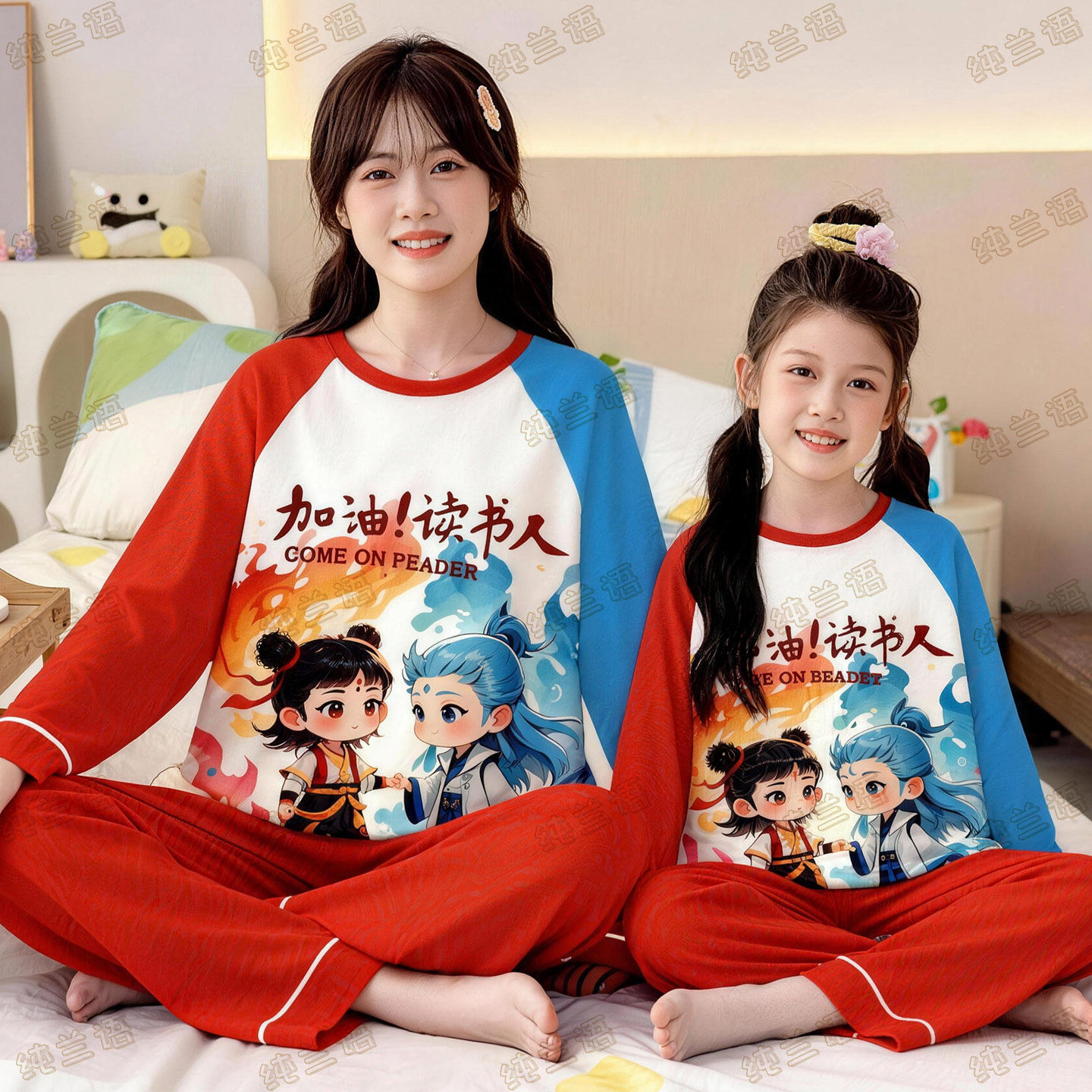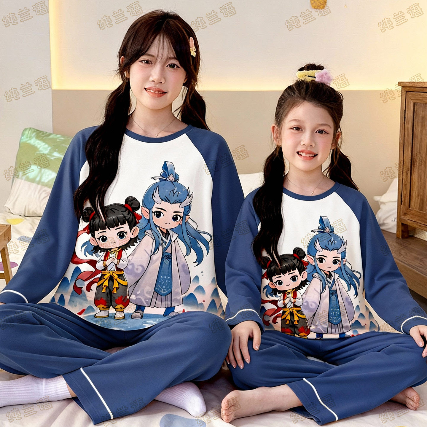 311线报网描述:母女装哪吒春秋季纯棉长袖中大童家居服套装