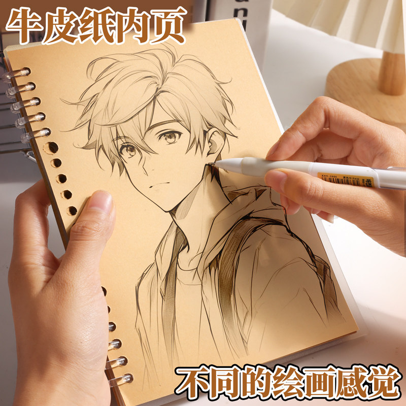 活页牛皮纸空白本绘画本素描本A5活页笔记本子简约高颜值B5初中生高中生美术生写生专用A4动漫人物16k速写本