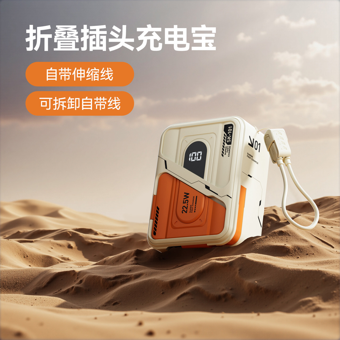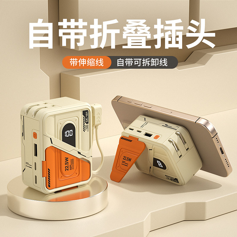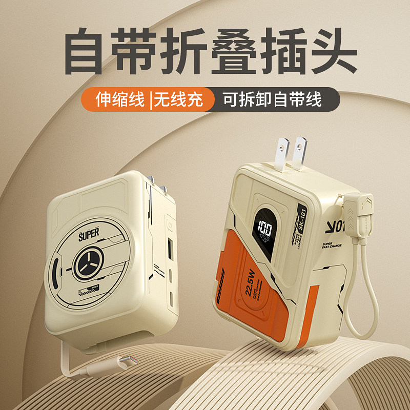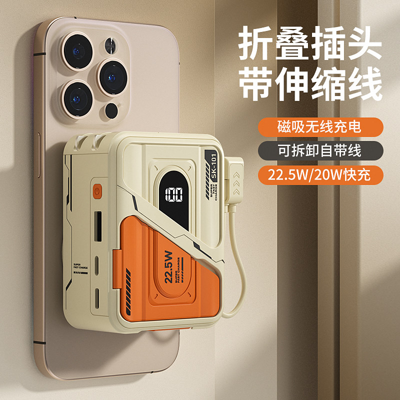 【充电宝3C认证可上飞机】2026新款快充大容量自带伸缩线插头携带磁吸五合一适用苹果17手机小米专用移动电源