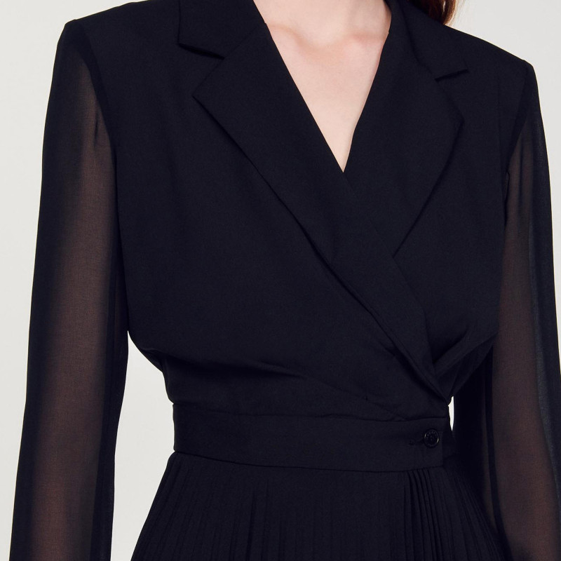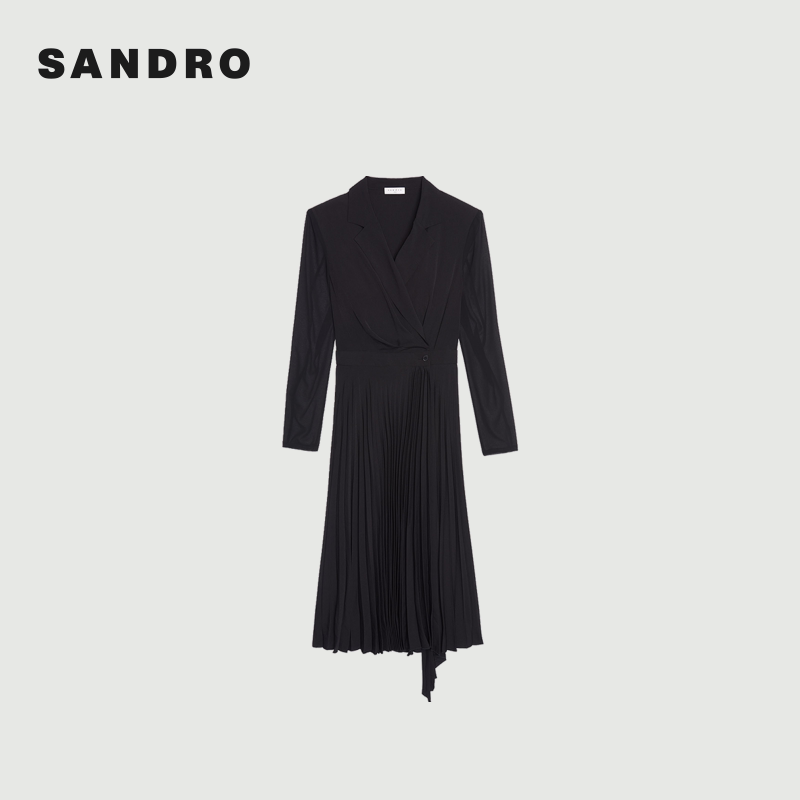 311线报网描述:交叉透视法式优雅长袖百褶连衣裙