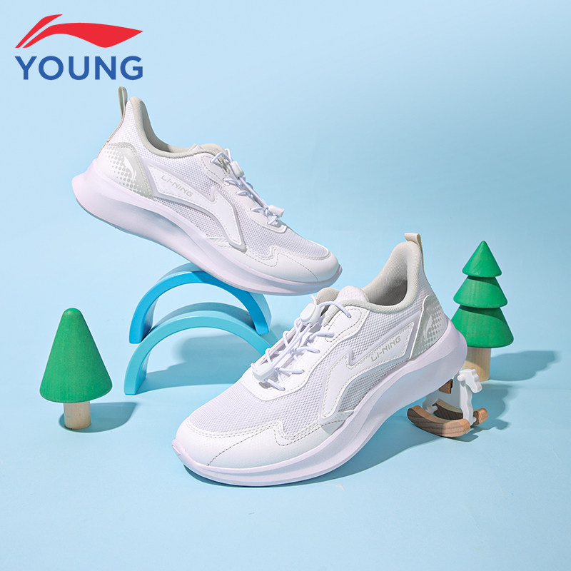 李宁儿童小白鞋男童运动鞋2026春季网面女童青少年学生白色跑步鞋