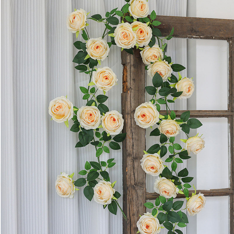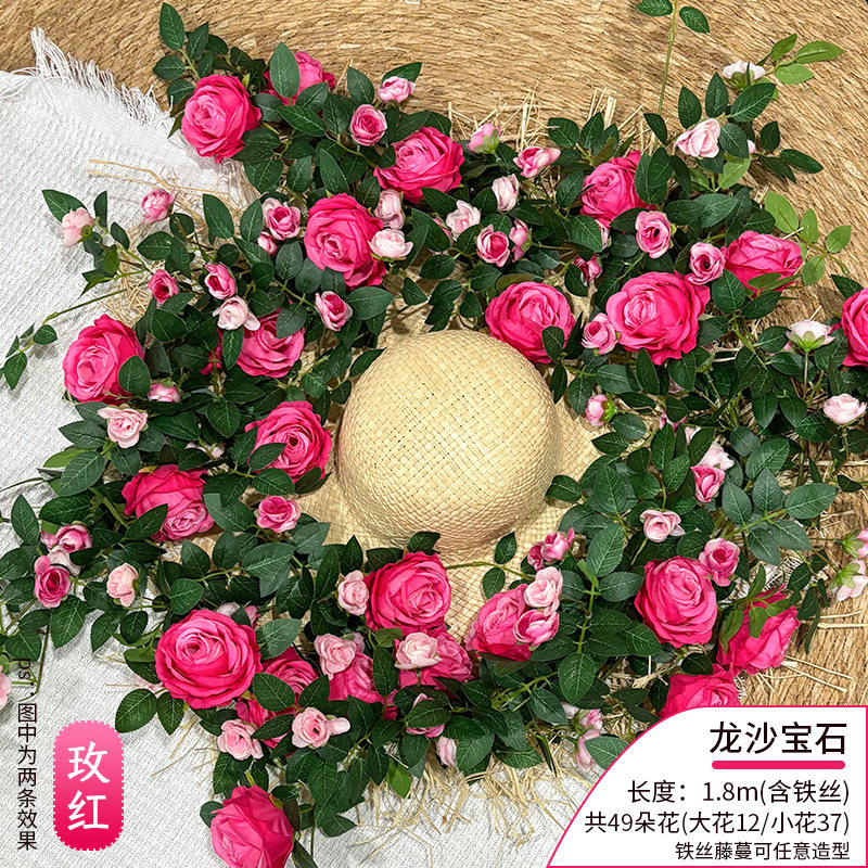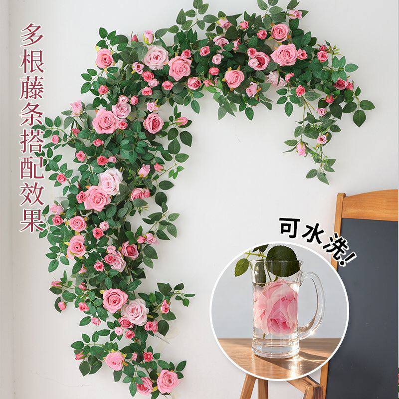 仿真玫瑰花藤条仿真花造景装饰假花墙面装饰壁挂空调水管装饰花