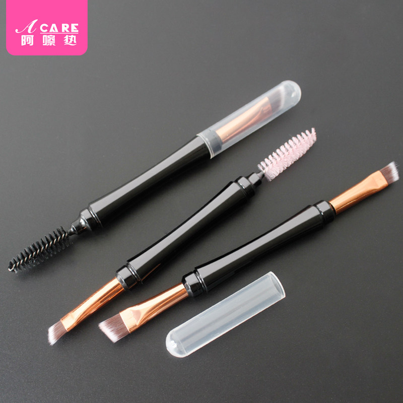 特惠双头眉毛刷眼影斜角眉粉刷子便携式女小扫眉梳初学者工具化妆