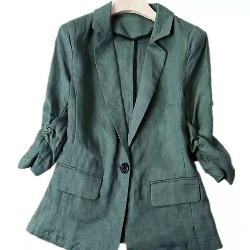 2026早春新款亚麻薄小西装女外套棉麻七分袖修身休闲气质百搭洋气