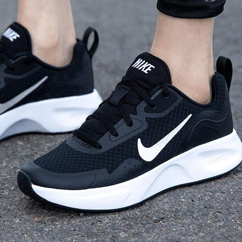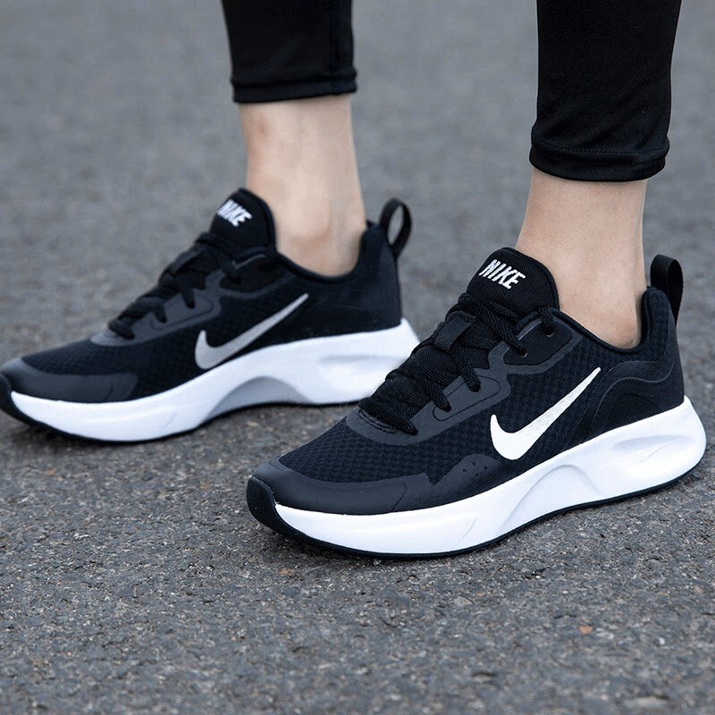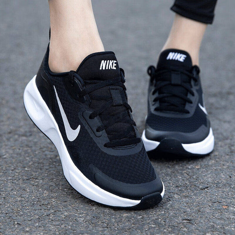 耐克网面休闲运动鞋女款轻便缓震黑白色跑步鞋减震防滑设计