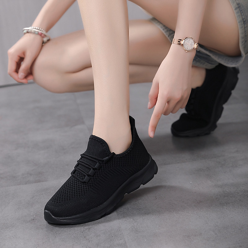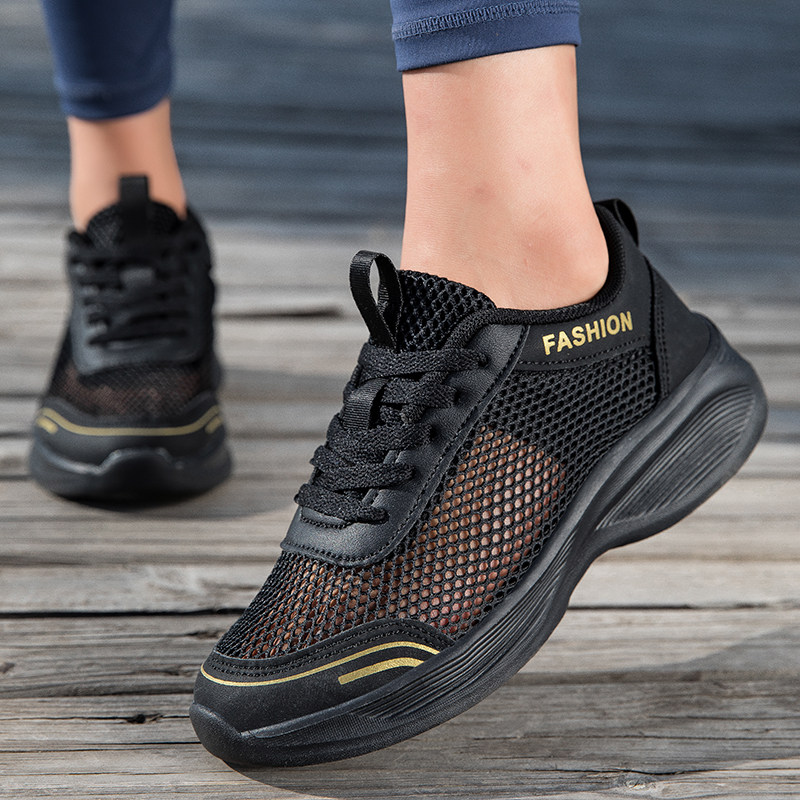 黑色运动鞋女款夏季透气薄款网面女鞋休闲防滑软底轻便减震跑步鞋