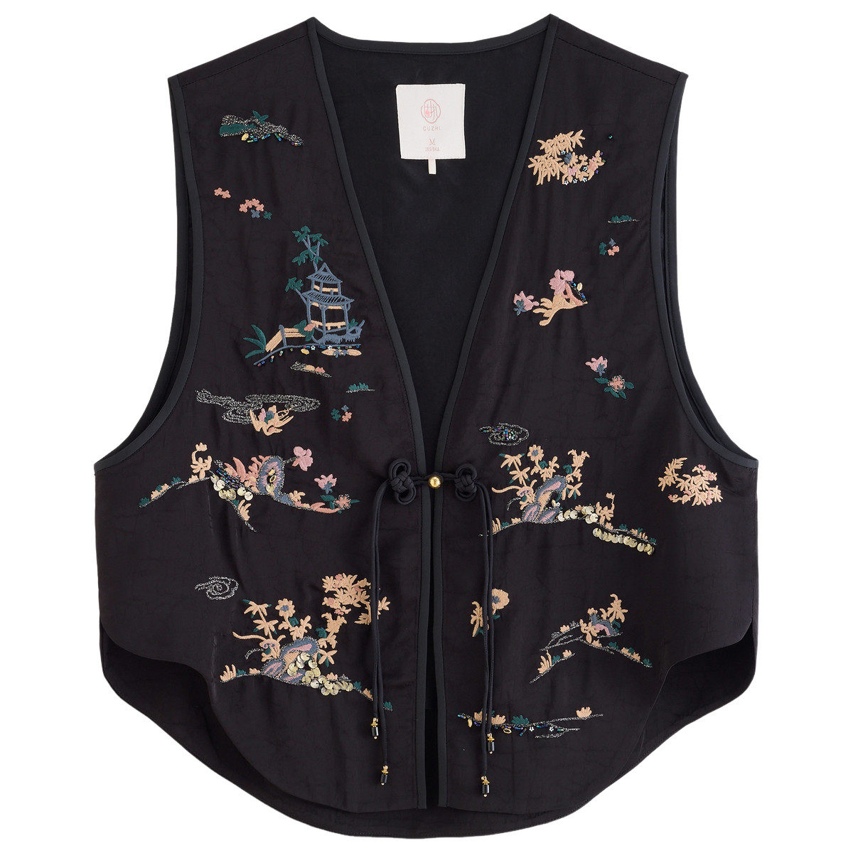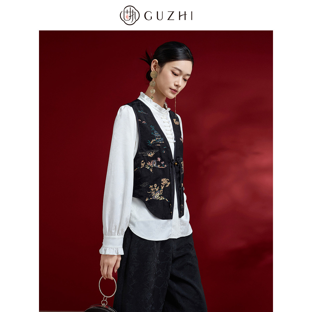 固执2026春季新款新中式国风v领刺绣短款马甲背心外套女上装