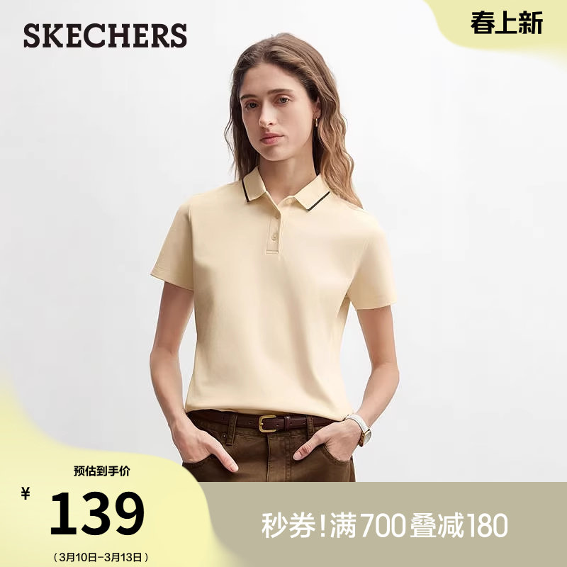 斯凯奇2026春季新款女款时髦甜酷风POLO衫短袖T恤休闲上衣打底衫