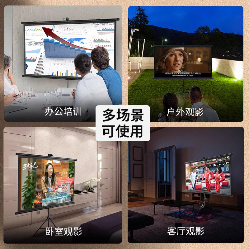 支架幕布投影布落地移动便携支架杆免打孔可壁挂72寸84寸100寸家用高清卧室投影幕布户外投影仪投屏办公幕布