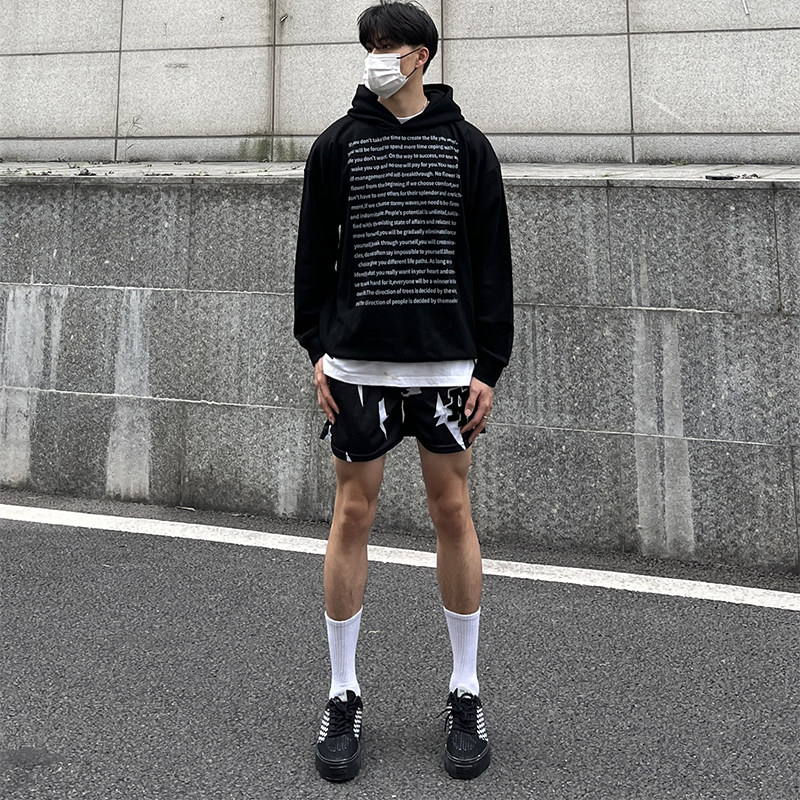 黑色篮球短裤男款美式不过膝四分运动裤网眼透气速干训练裤子夏季