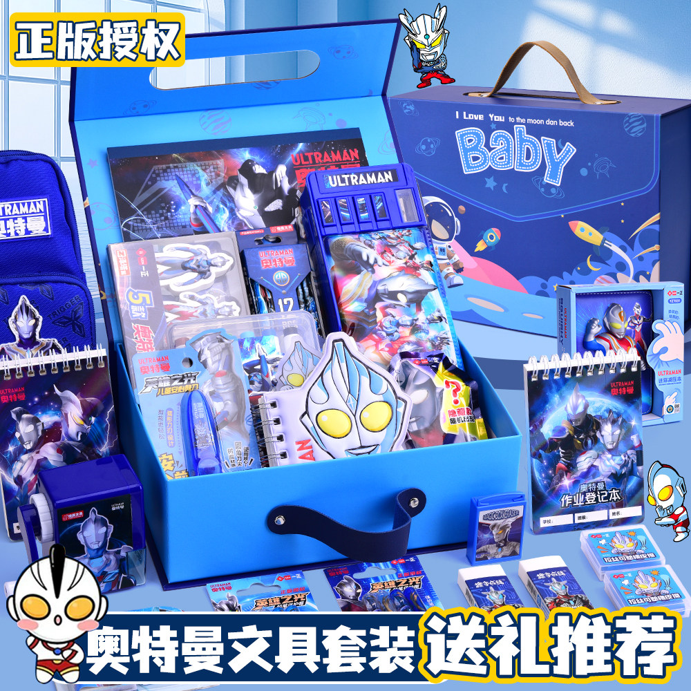 奥特曼文具礼盒套装男孩生日礼物学习大礼包开学礼物高颜值奥特曼周边小学生一二三年级伴手礼毕业礼物盲盒