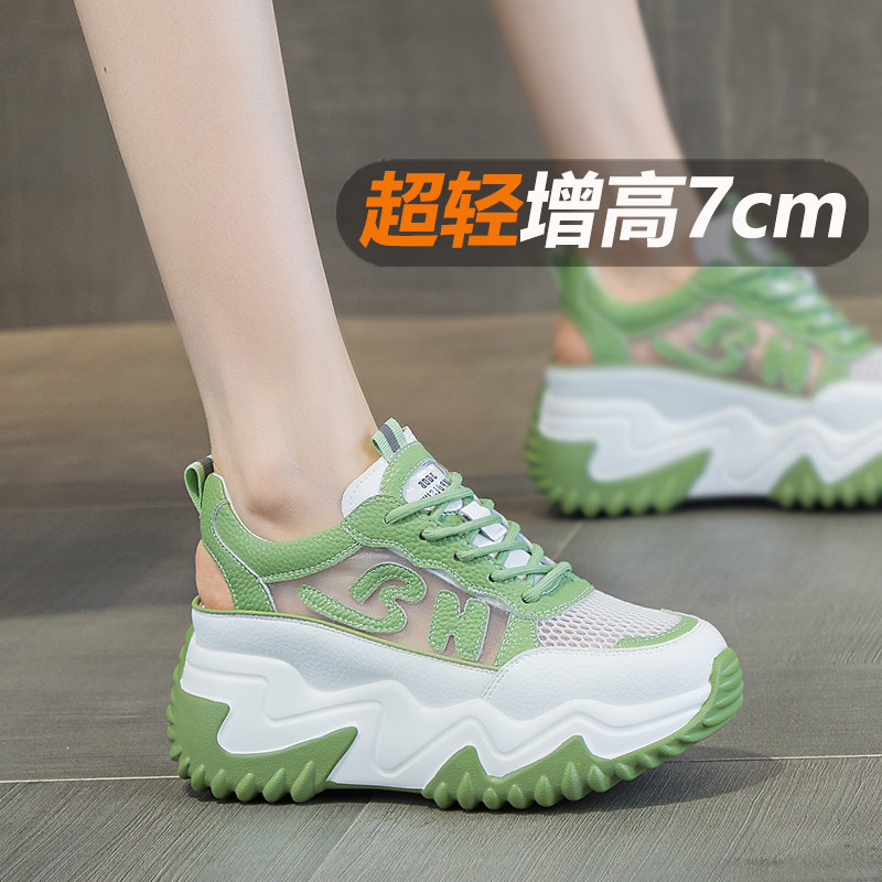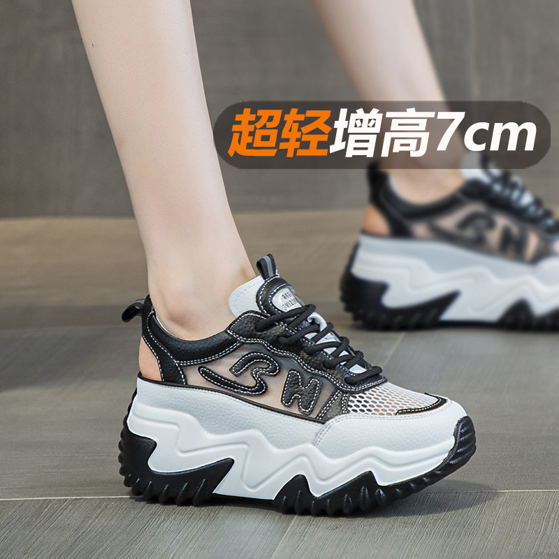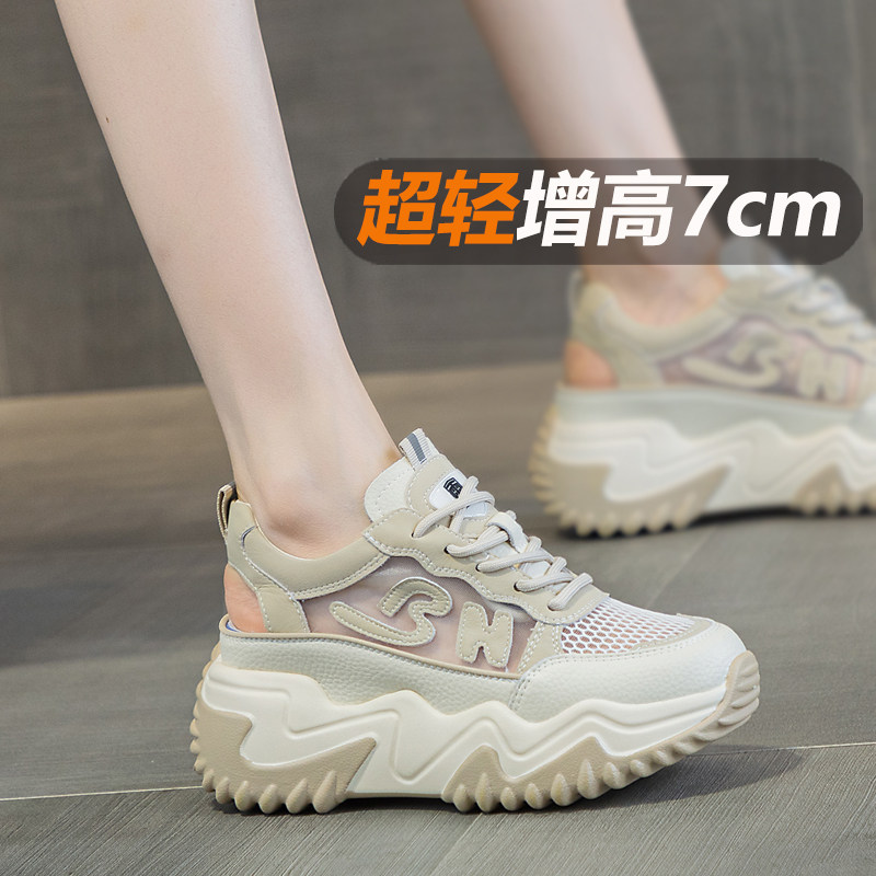 7cm内增高运动鞋女款2026新款夏季网面透气老爹鞋单网薄款网鞋女