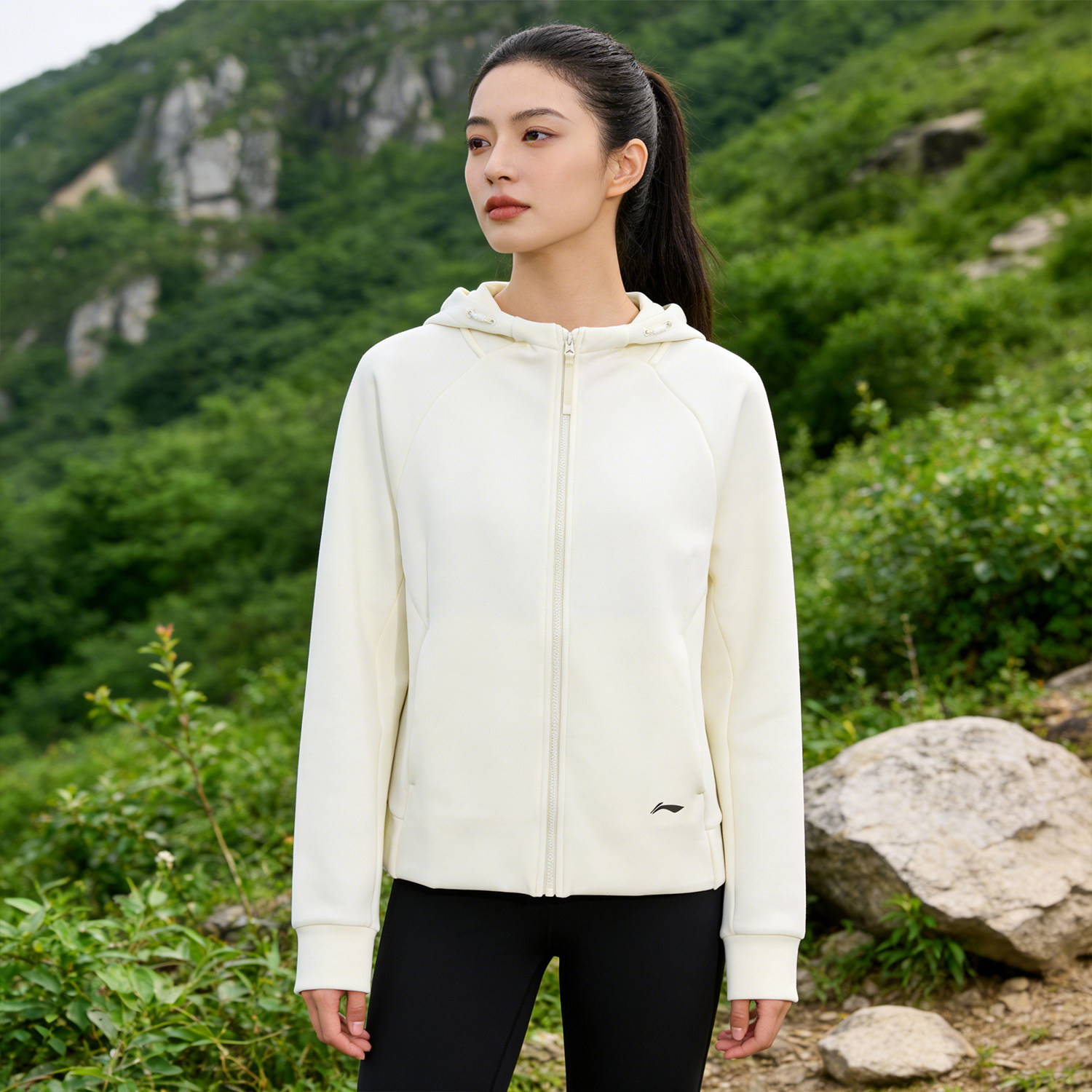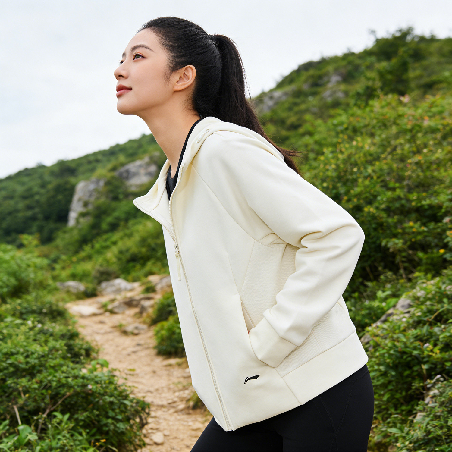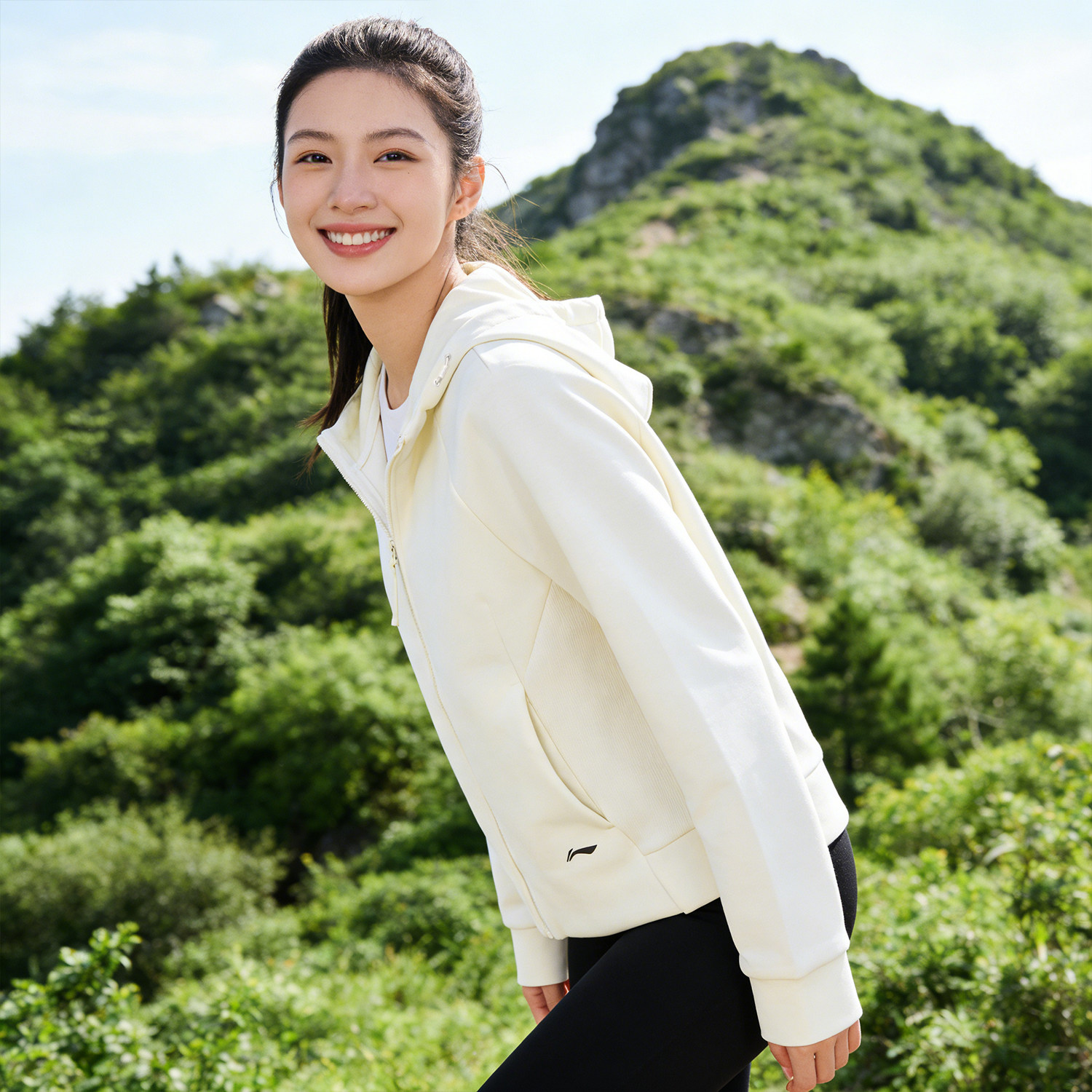 李宁开衫连帽卫衣女款2026春季新款健身系列纯色百搭宽松休闲外套