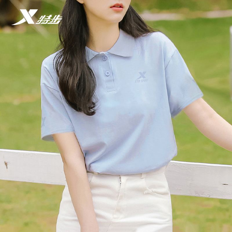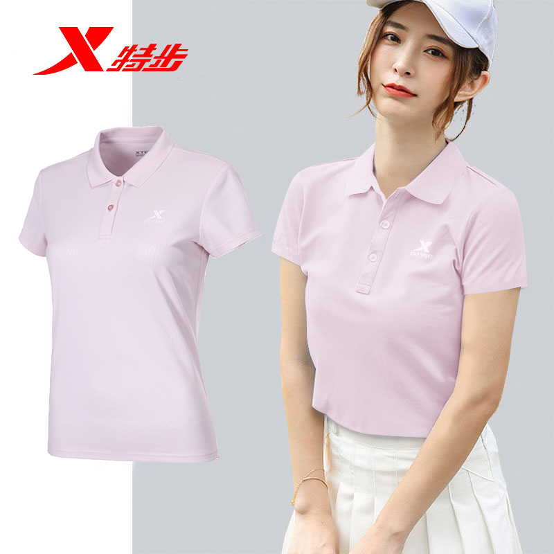 特步短袖Polo衫2026新款速干透气翻领运动上衣休闲网球服女款半袖