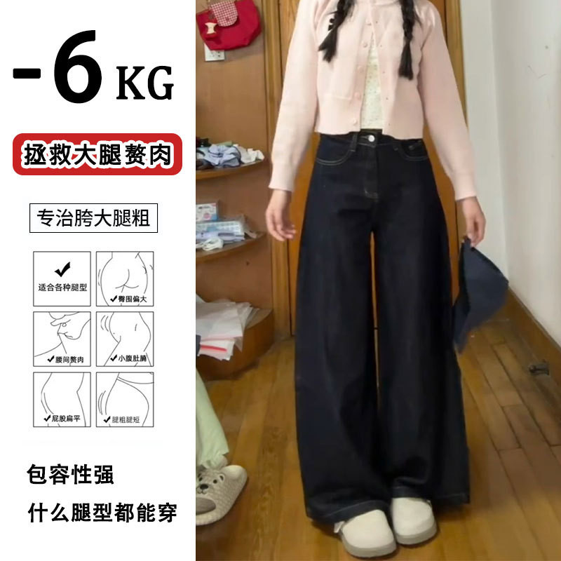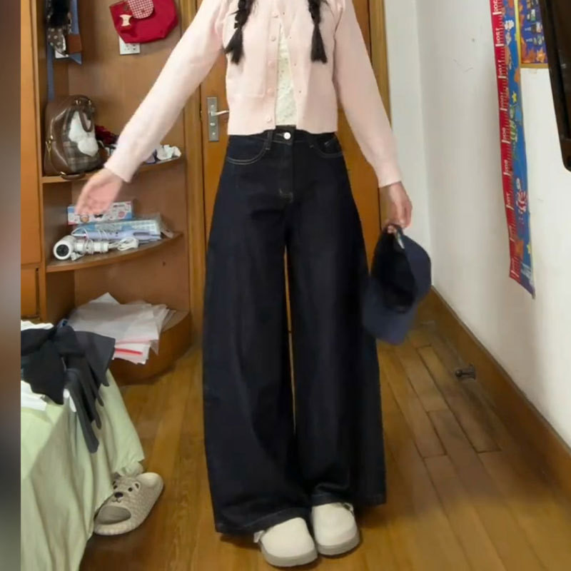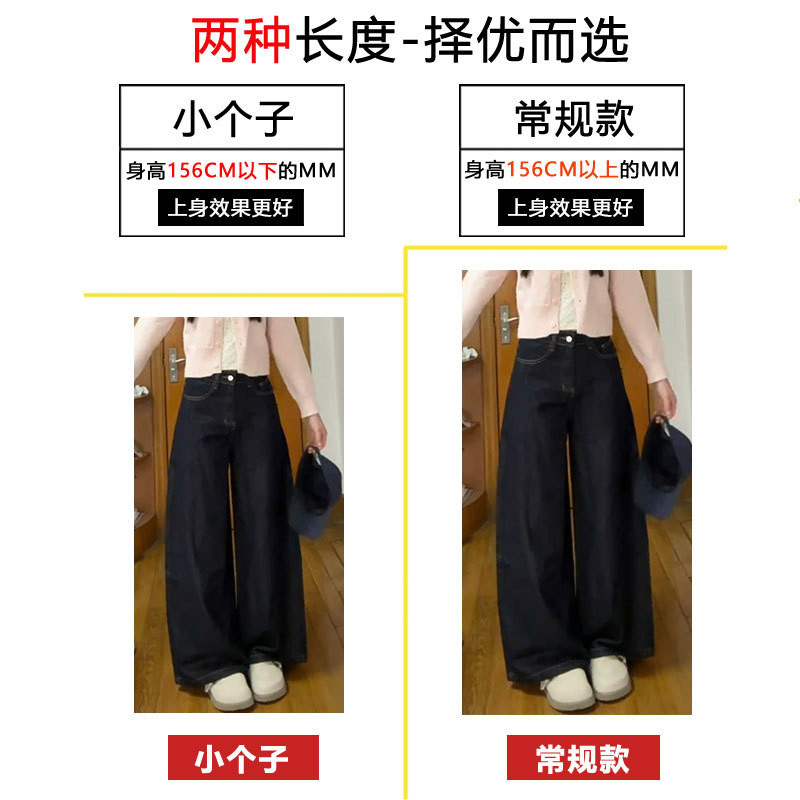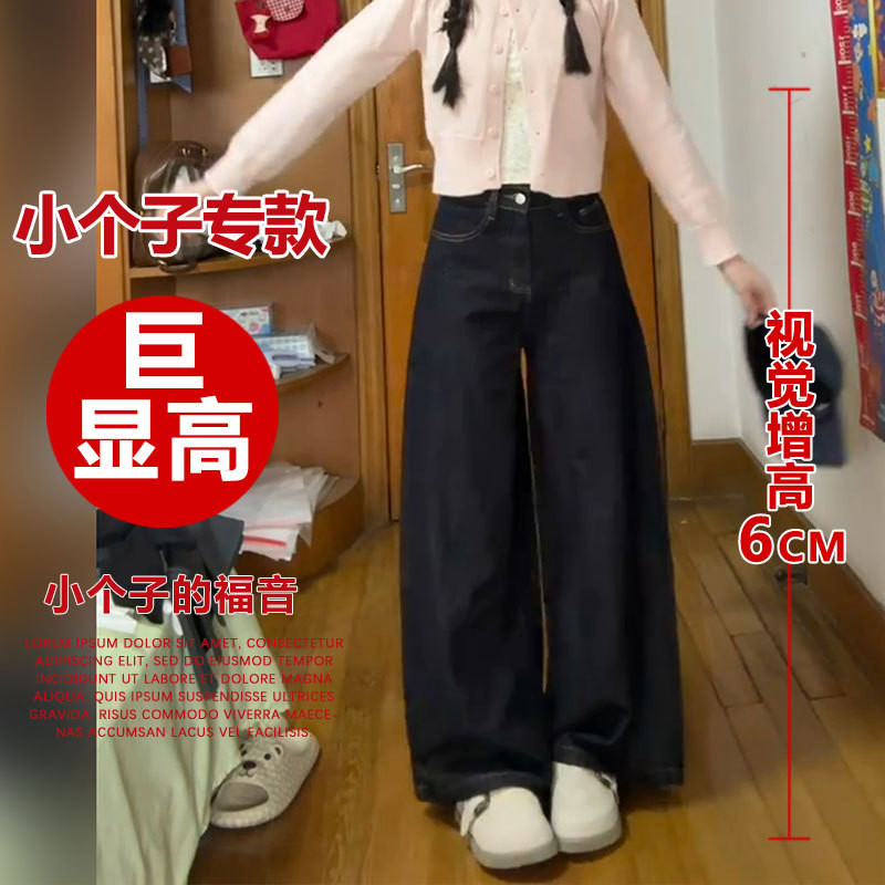 150小个子深蓝色牛仔裤子女款阔腿裤2026新款春季九分直筒裤显高