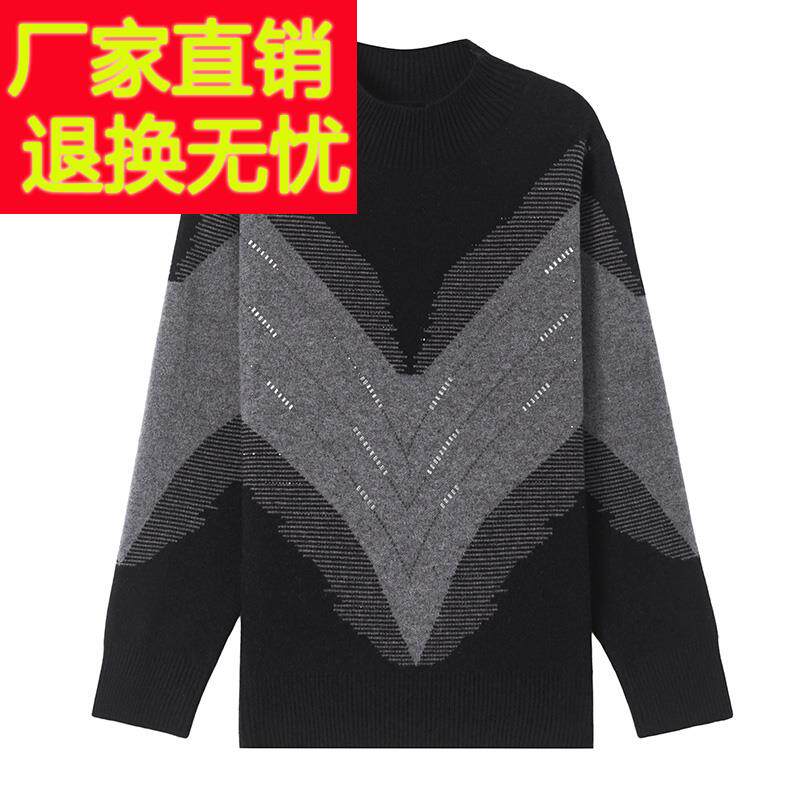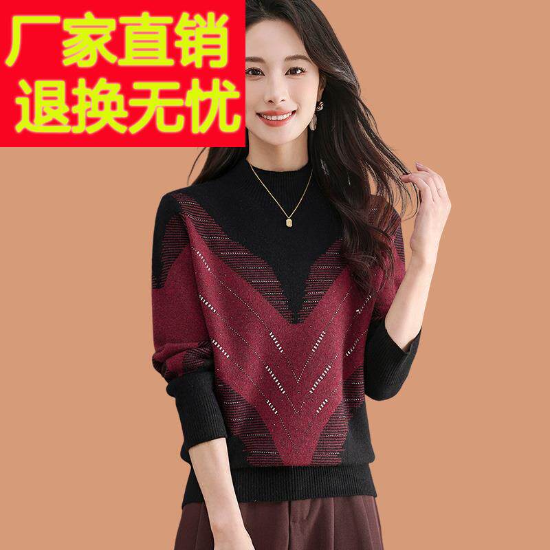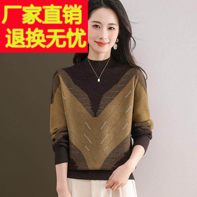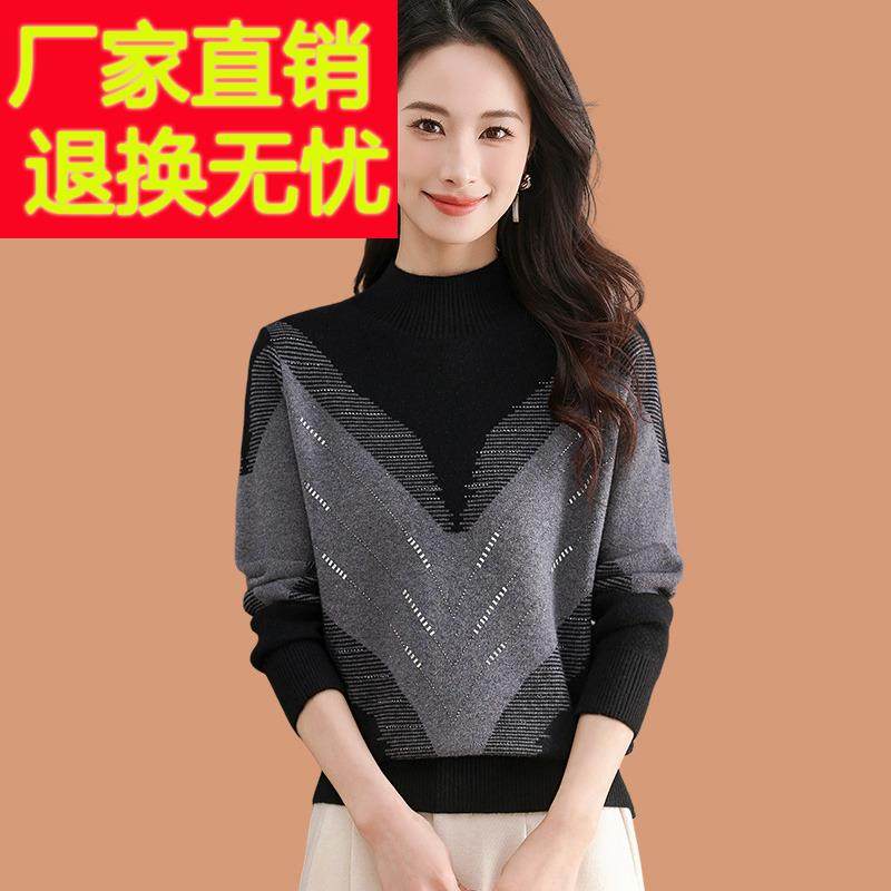 半高领毛衣女款2024新款秋冬季洋气妈妈宽松加厚配裙子羊毛打底衫