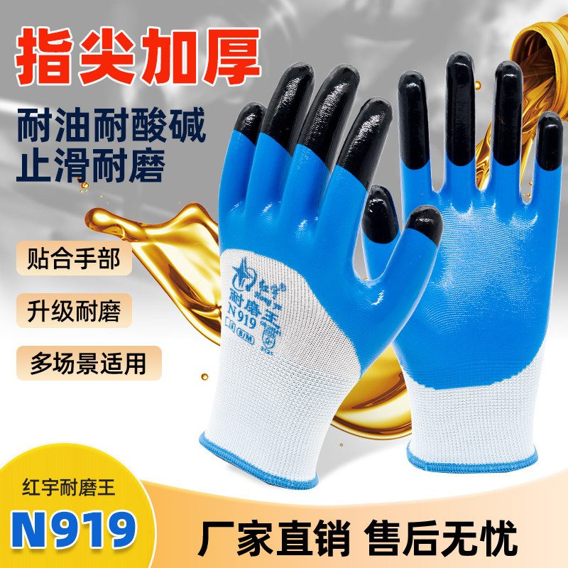正品星宇红宇N919耐磨王丁腈手套劳保耐磨防水加强指耐油工业机修
