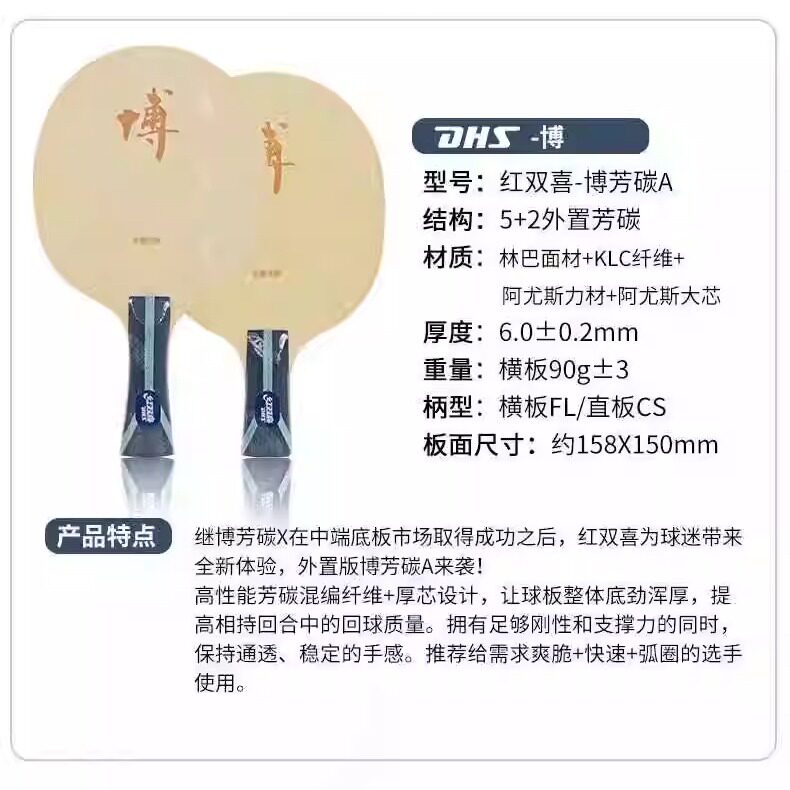 正品红双喜博A乒乓球拍底板博X升级版外置芳碳专业底板博ALC球拍