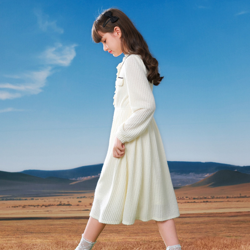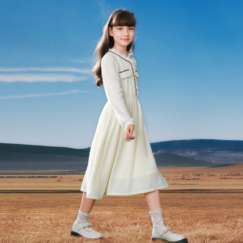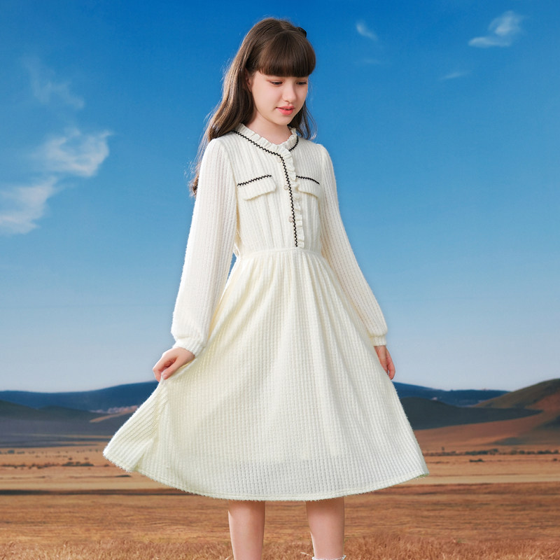 女大童连衣裙2026新款青少年洋气春款长袖衣服小女孩小香风公主裙