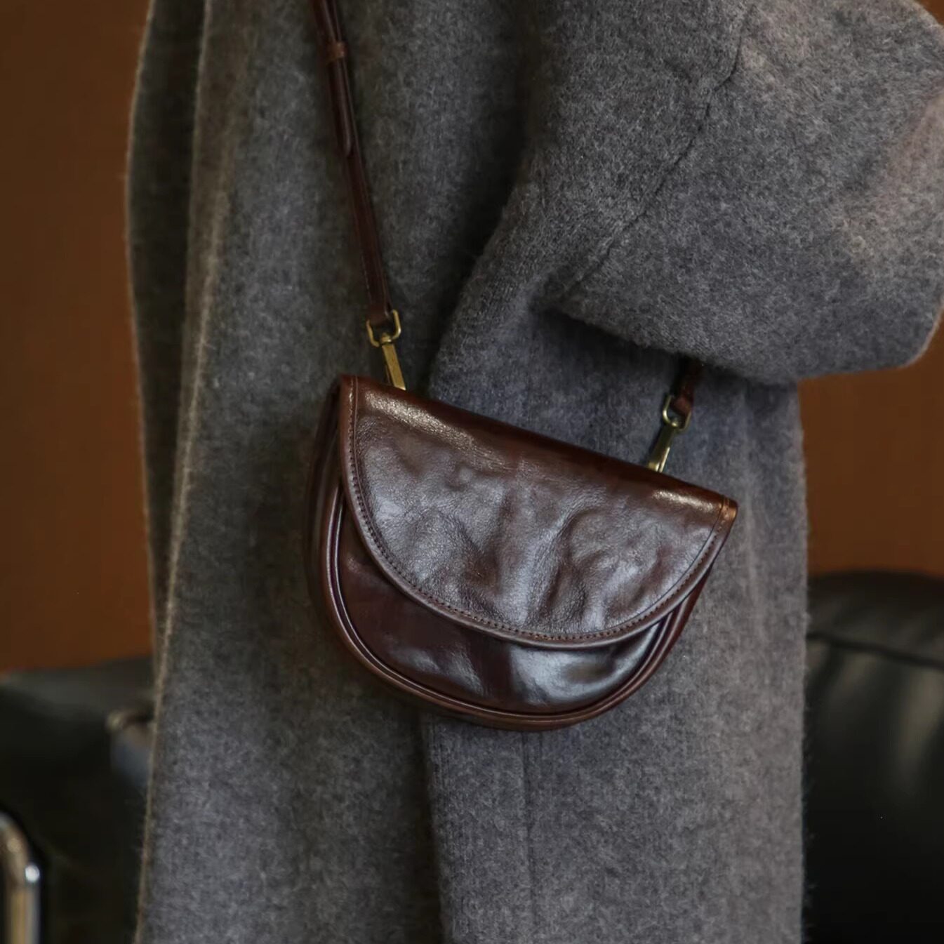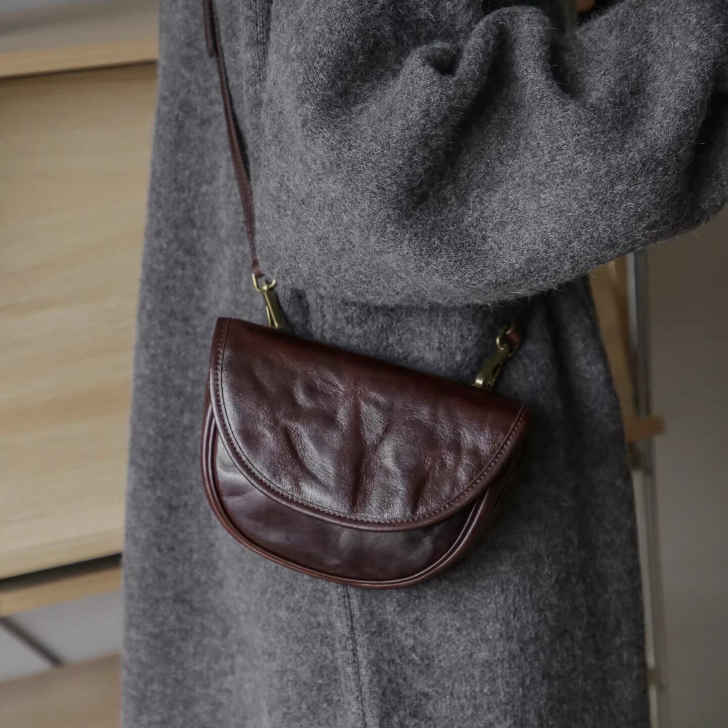 漫色手抓纹植鞣头层牛皮马鞍包女复古真皮单肩斜挎包腰包手机包