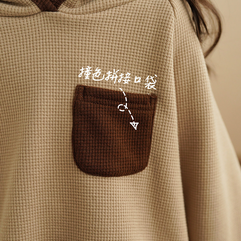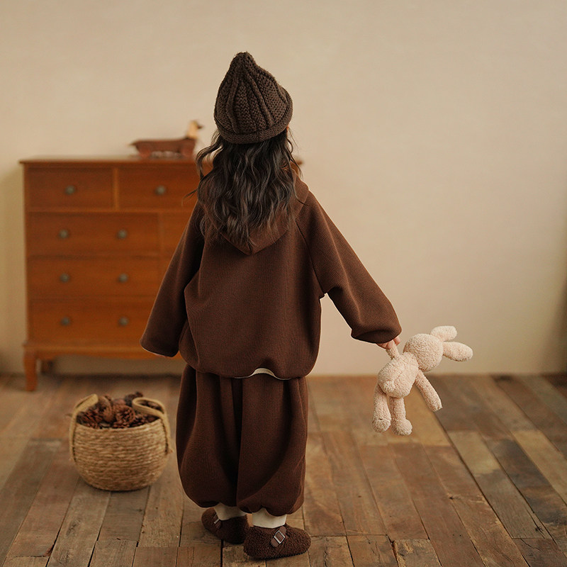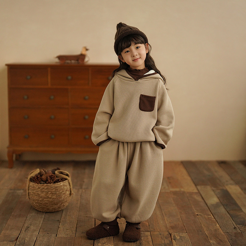 砚台家儿童撞色拼接口袋套装女童加绒卫衣裤子宝宝运动两件套冬装