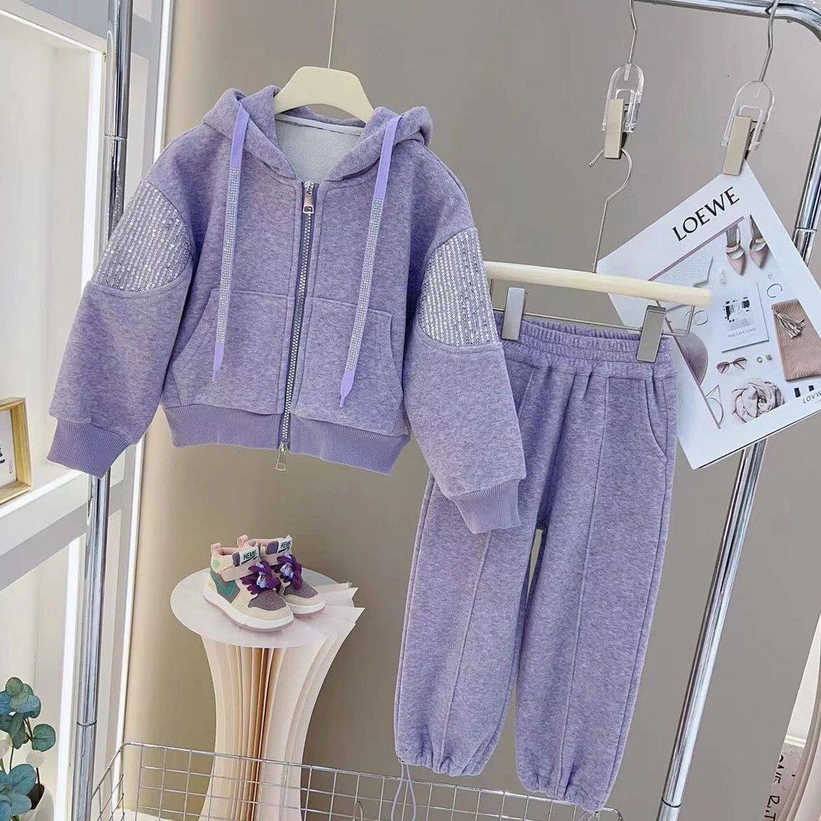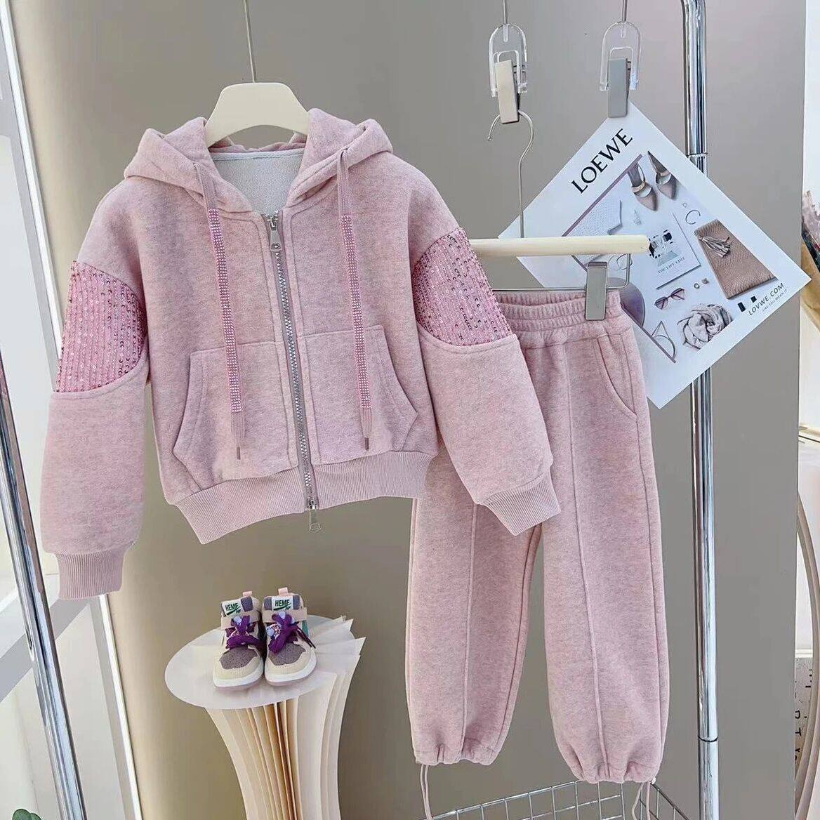 儿童秋冬洋气加绒套装2026新款女童冬装运动开衫外套爆款两件套潮