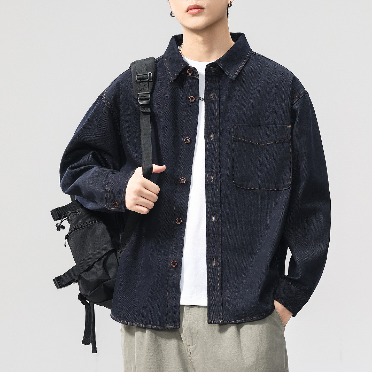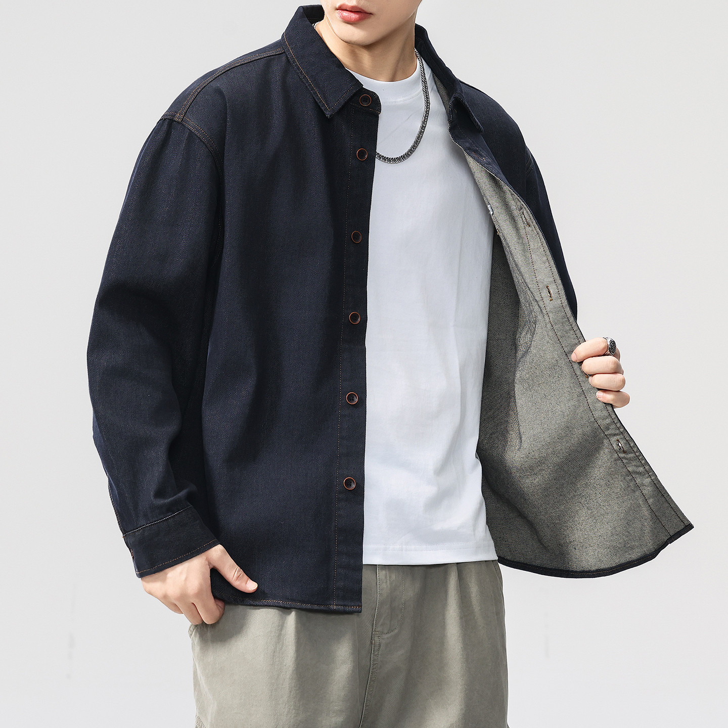 男士大码高级牛仔长袖衬衫男款2026新款男装衬衣爆款春季外套黑色