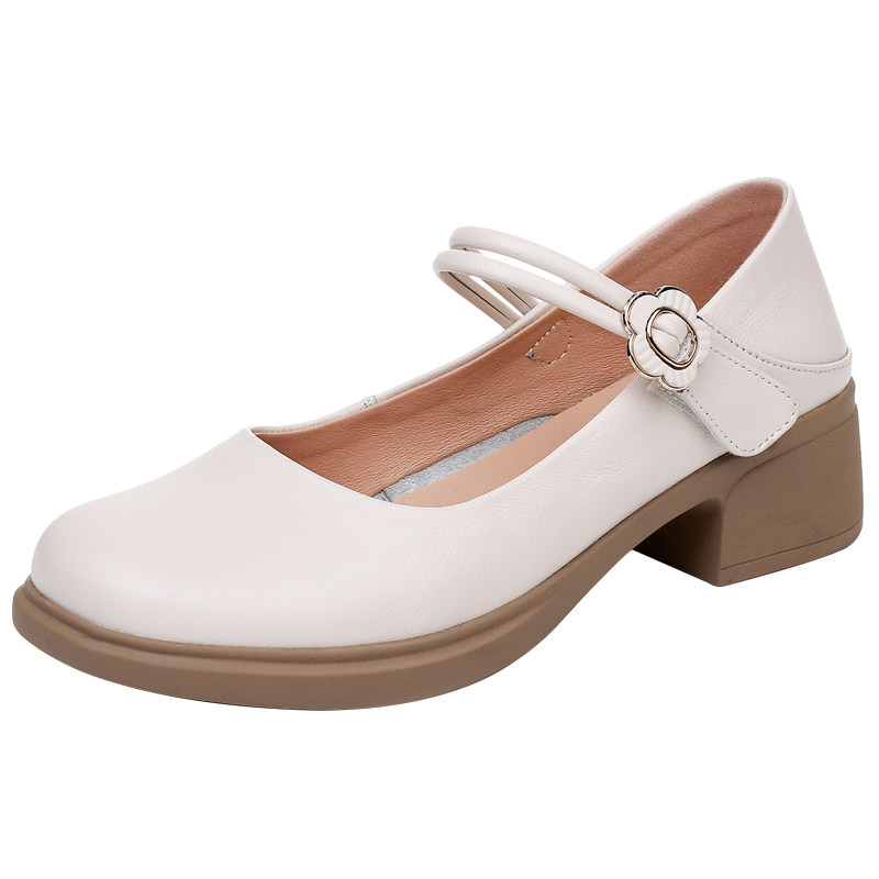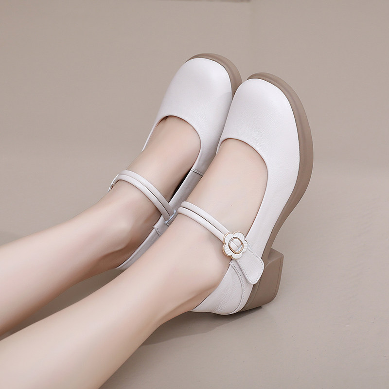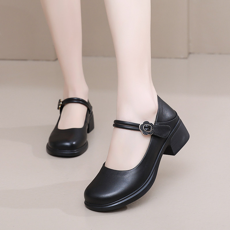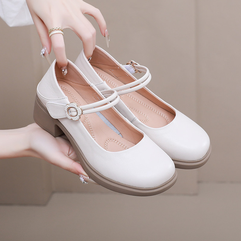 真皮软皮粗跟玛丽珍鞋女2026新款春夏软底不累脚女鞋百搭单鞋大码
