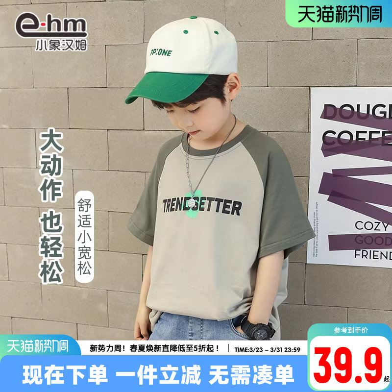 小象汉姆童装男童短袖T恤拼接款儿童纯棉体恤衫半袖2026夏装新款