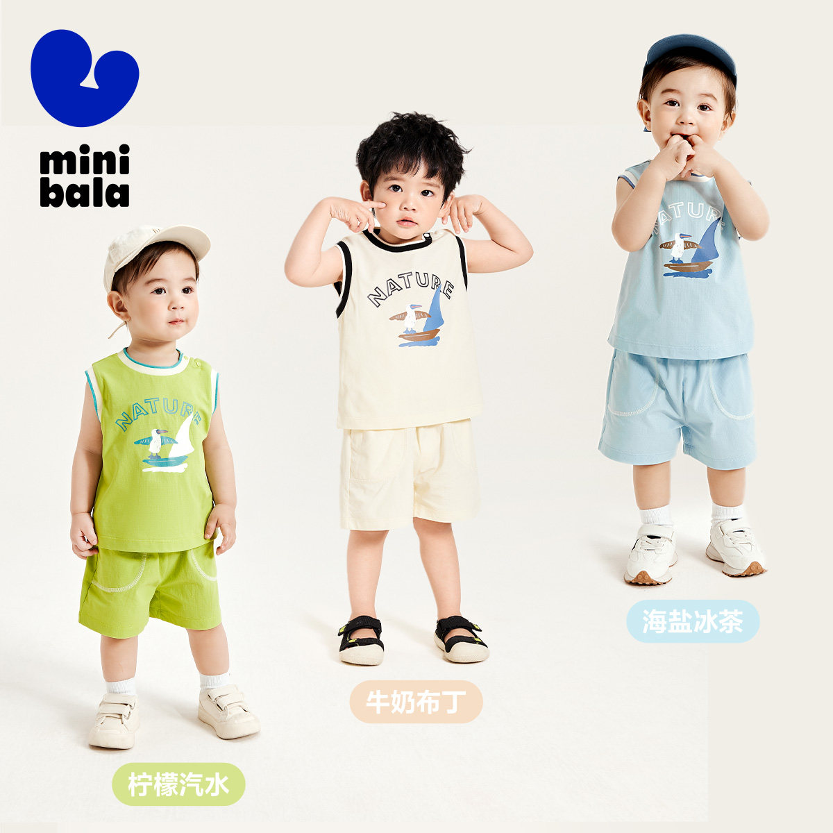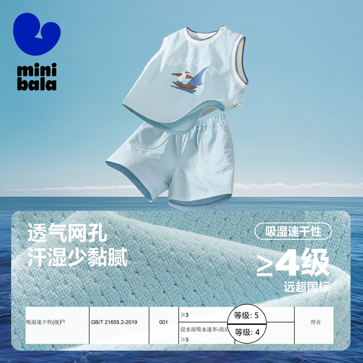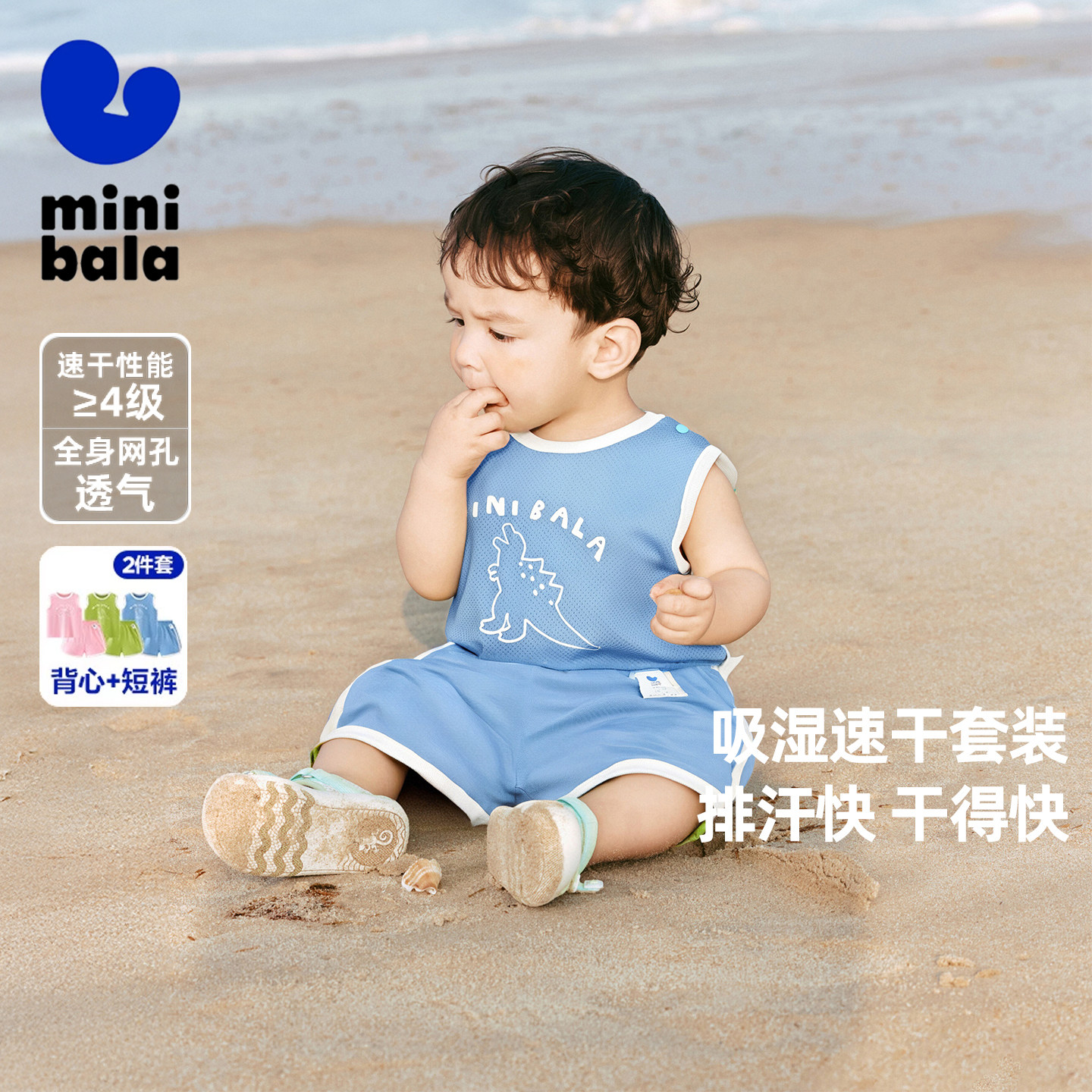 迷你巴拉儿童宝宝短袖运动套装男女童T恤速干户外夏季运动服背心