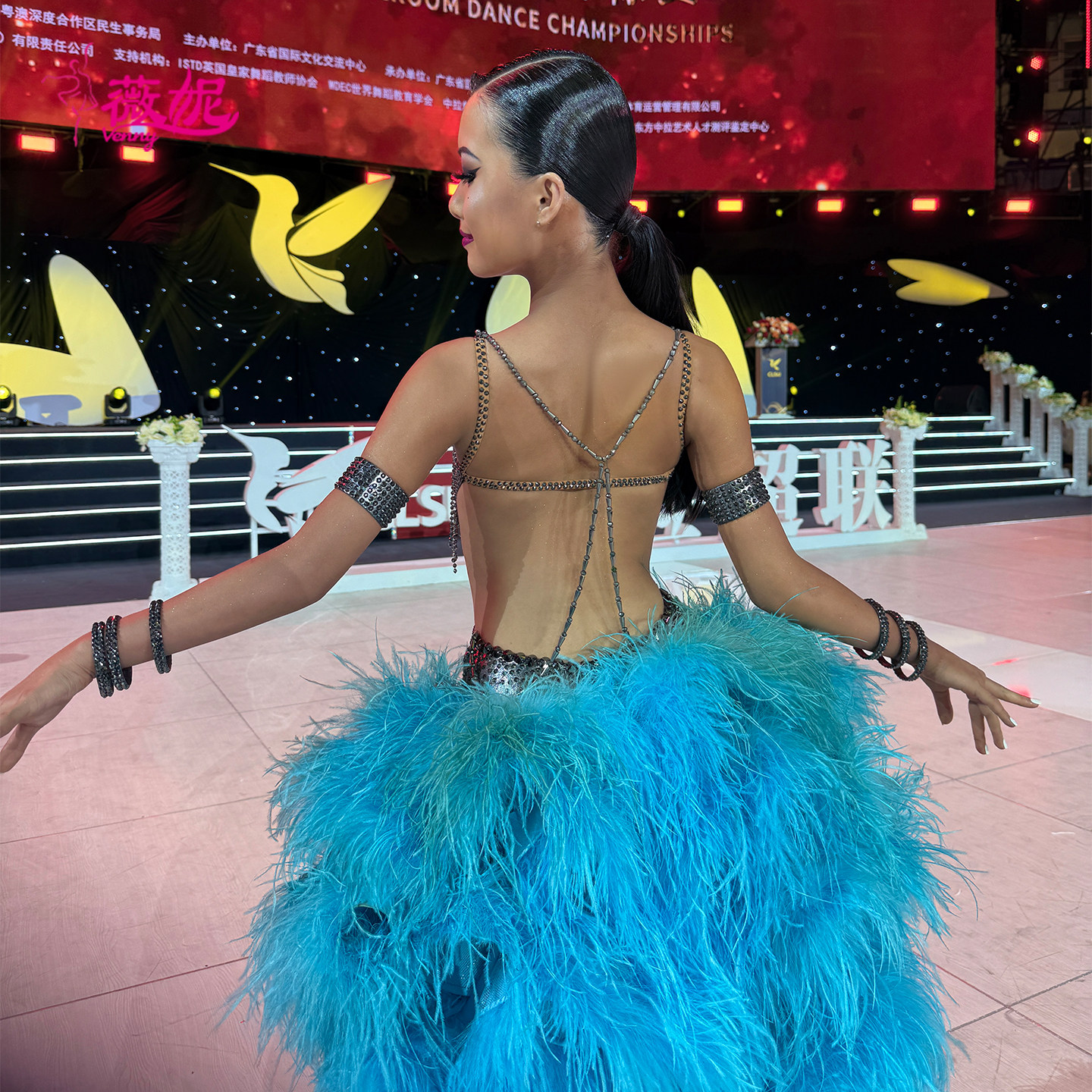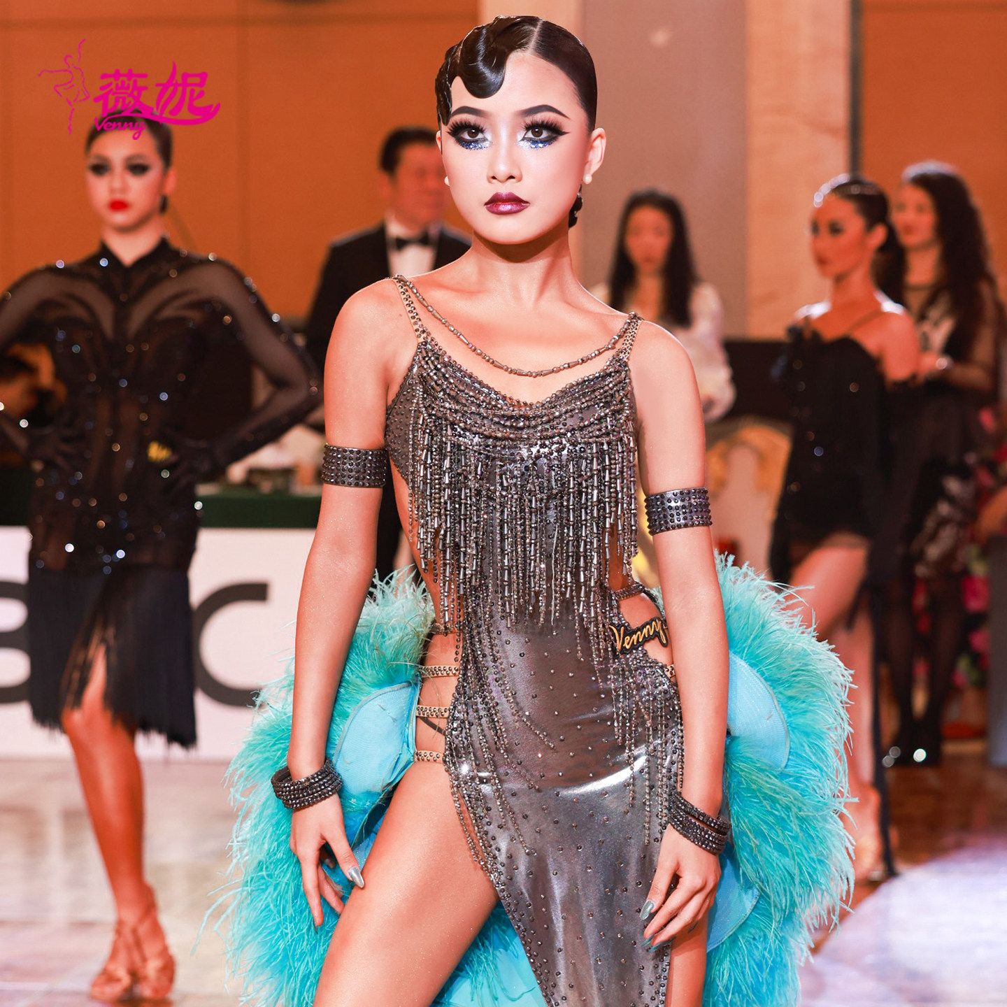 Venny薇妮舞美拉丁舞比赛花服镶钻珠管羽毛量身定制专业表演走秀