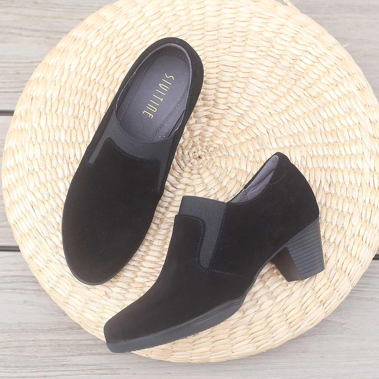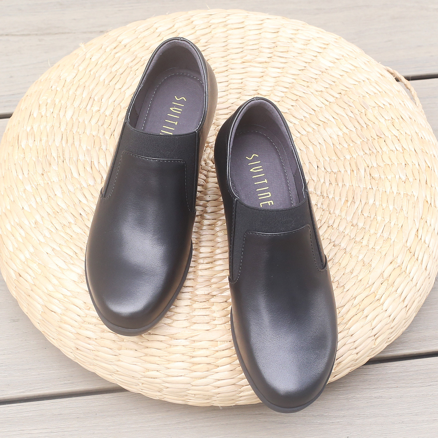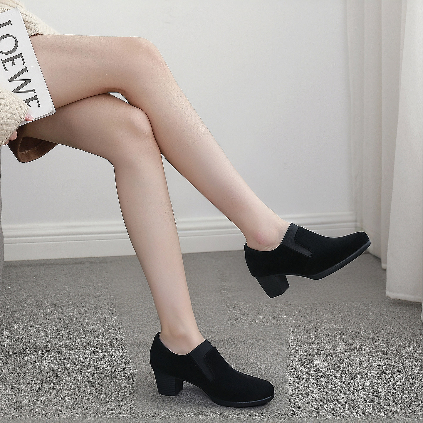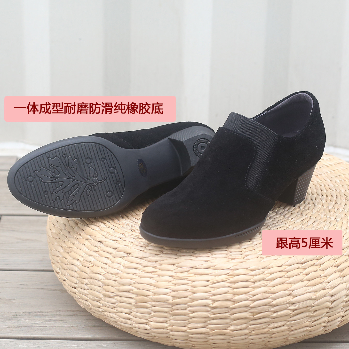 圆头粗跟深口单鞋女软皮软底真皮女鞋不累脚2025新款中跟一脚蹬