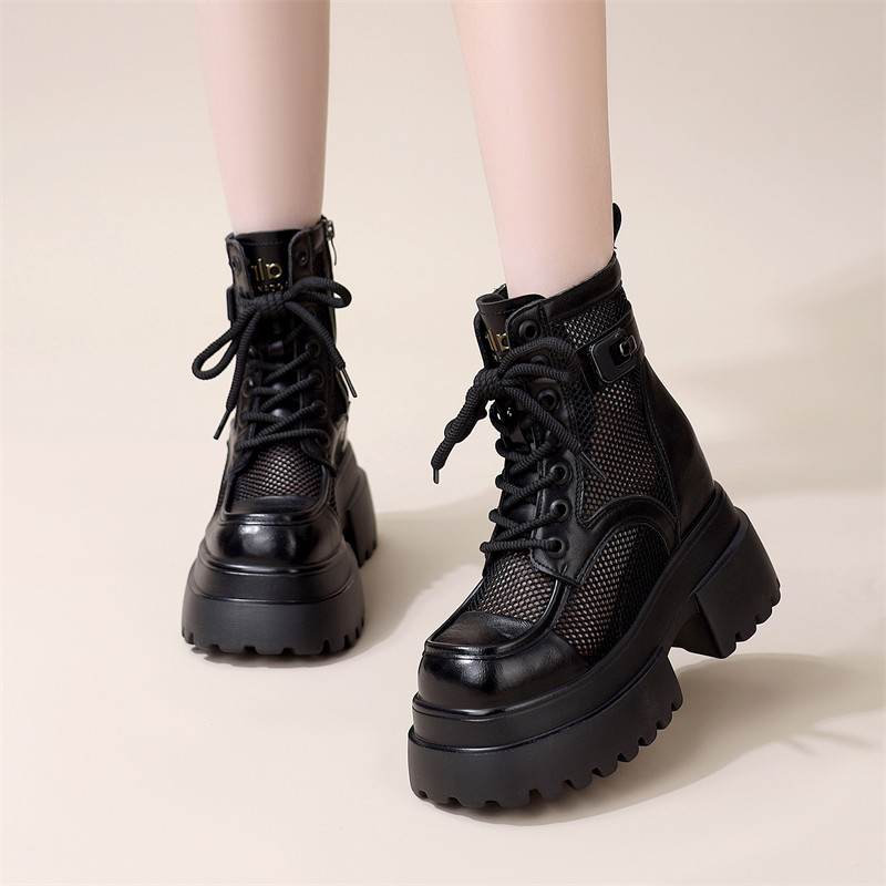 2026款春夏天马丁靴厚底网纱靴时尚女鞋透气靴子黑色镂空薄款凉鞋