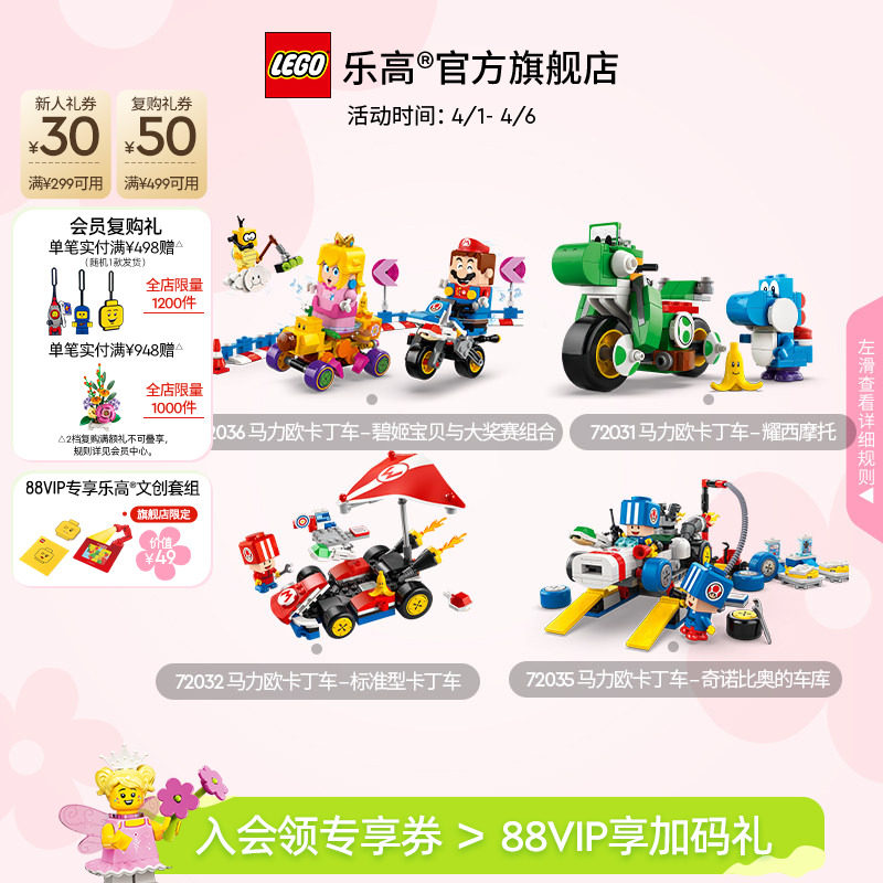 乐高官方旗舰店72031马力欧卡丁车耀西摩托马里奥积木儿童玩具