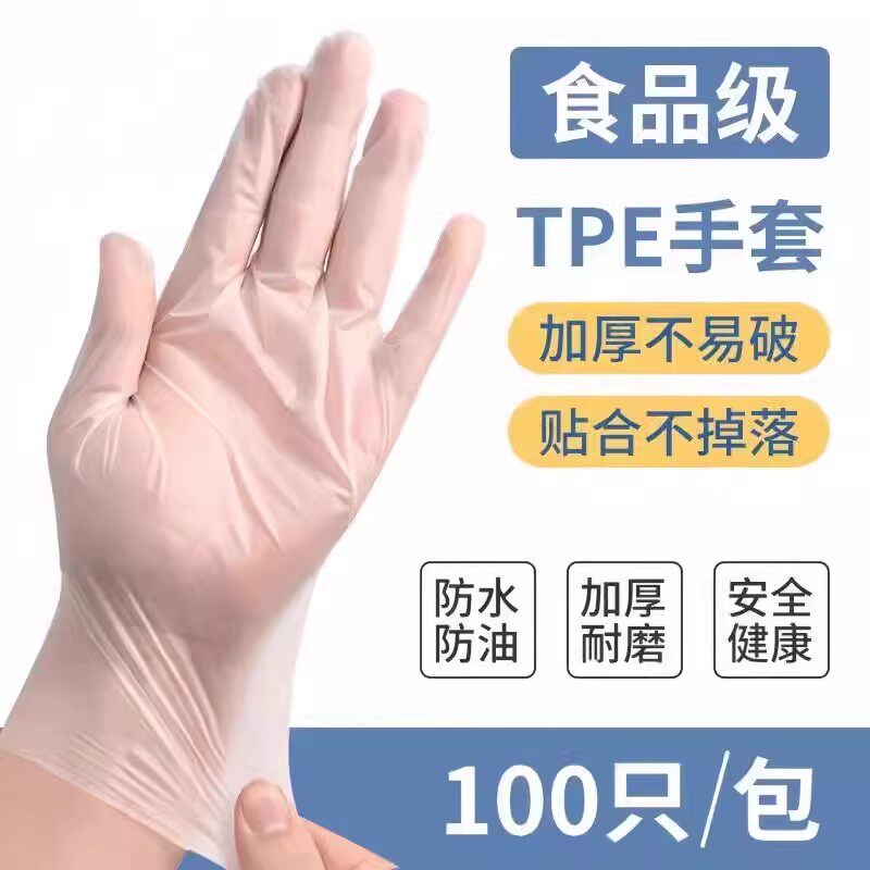 一次性手套食品级专用TPE塑料商用加厚耐用厨房餐饮抽取式盒装