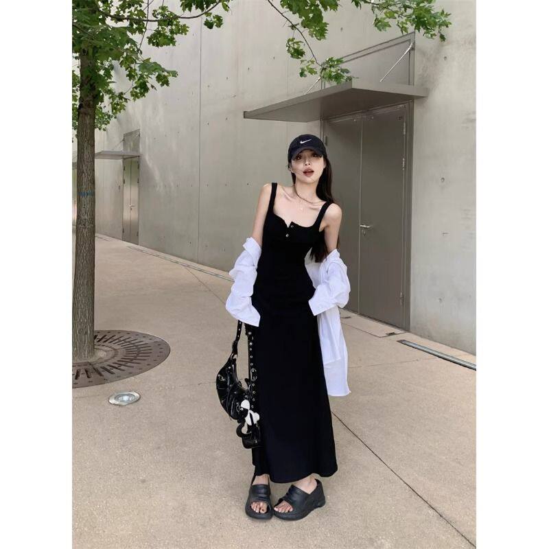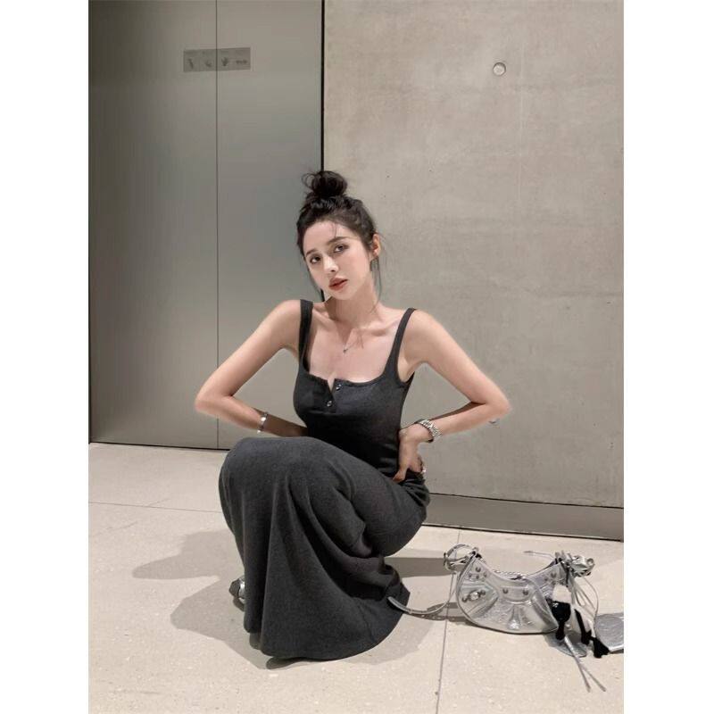 设计感针织吊带连衣裙女春季新款气质收腰包臀A字裙长裙春夏季潮