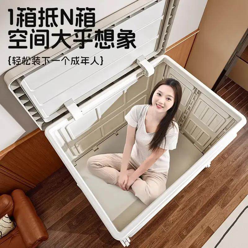 双开门衣服收纳箱整理箱大容量超大家用翻盖带轮衣物被子储物柜