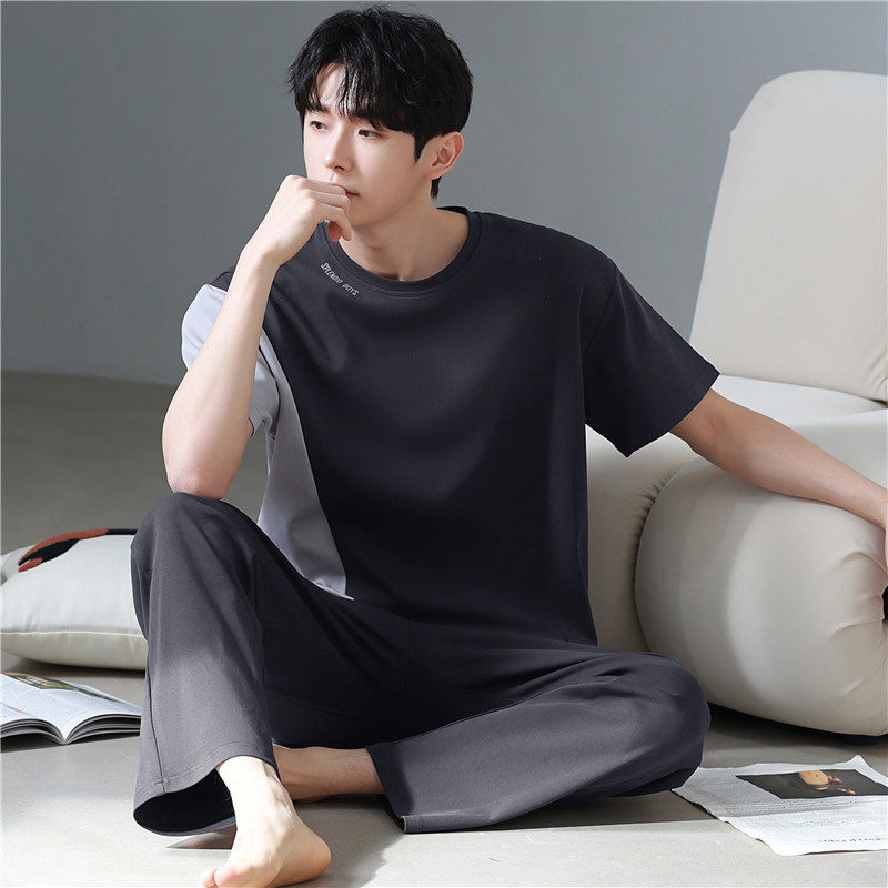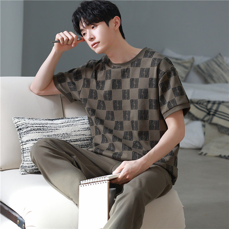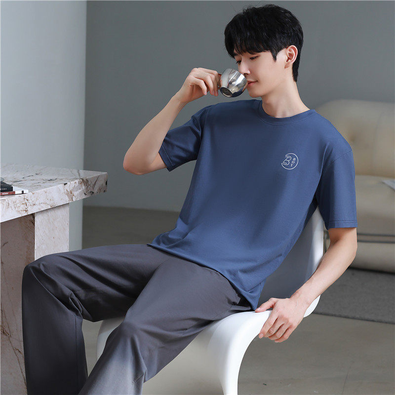 大童睡衣男孩夏季薄款纯棉青少年初中学生短袖长裤男款家居服套装