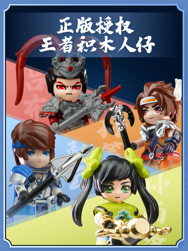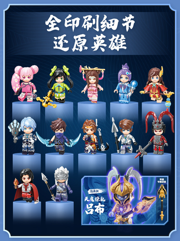 正版启蒙王者荣耀积木人偶盲盒赵云吕布拼装手办六一儿童玩具积木