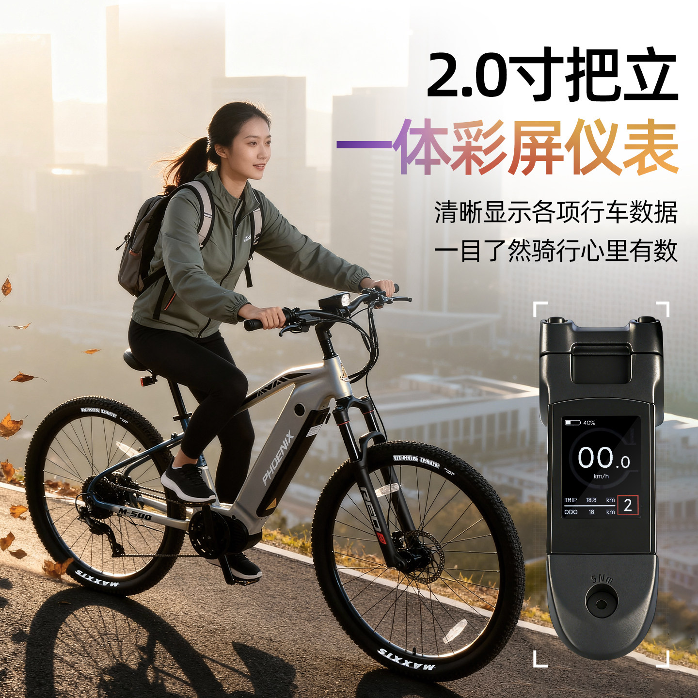 凤凰电助力单车E-bike中置电机力矩传感越野变速锂电池山地自行车