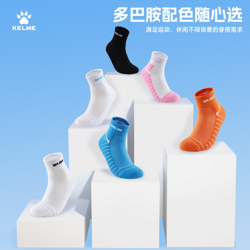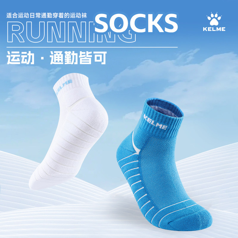 KELME卡尔美运动袜子男女短款夏季吸汗透气跑步羽毛球短袜白色