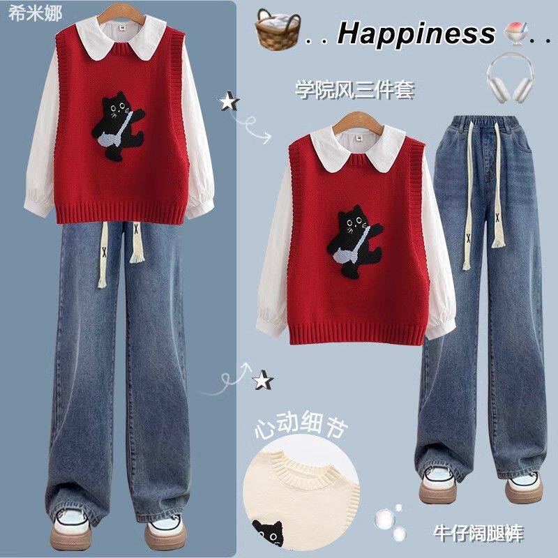 女学生春装套装2025新款少女洋气时髦春装初中学生穿搭一整套学院