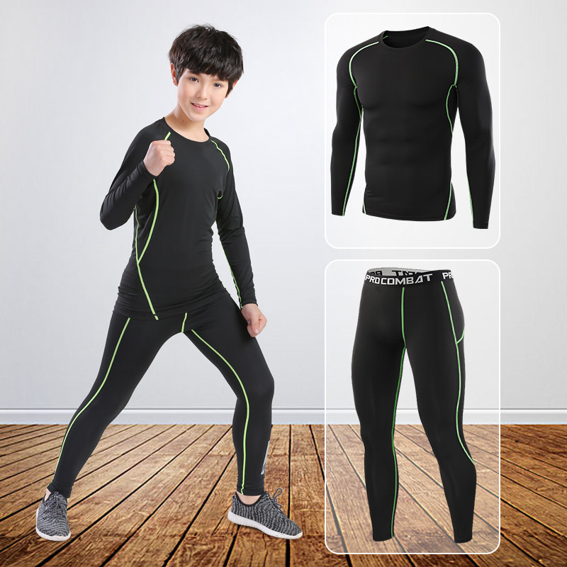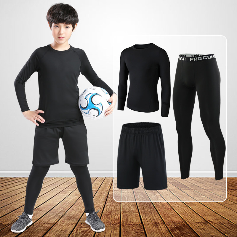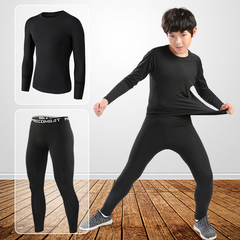 儿童篮球服打底紧身衣训练服速干男童跑步衫足球内搭运动套装秋冬