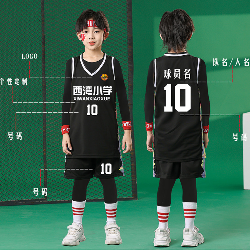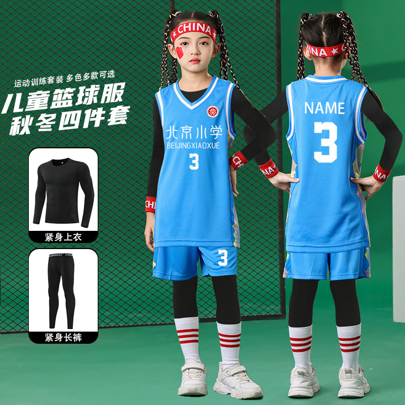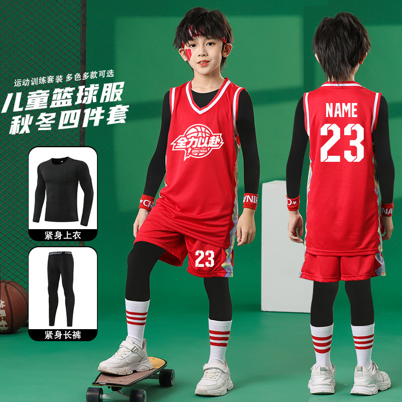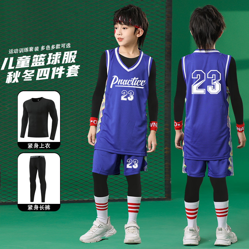 儿童篮球服套装男童小学生比赛训练队服秋冬内搭紧身衣四件套球衣