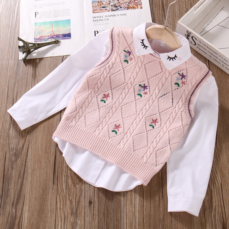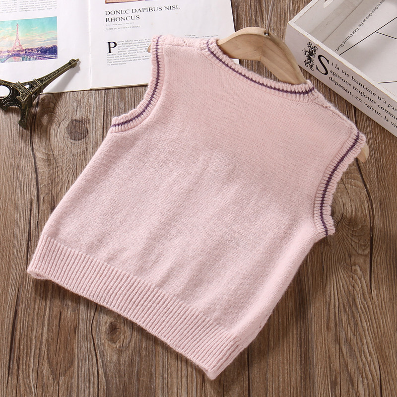 清仓~女童针织背心外穿春秋款洋气百搭上衣中大童毛衣马甲坎肩